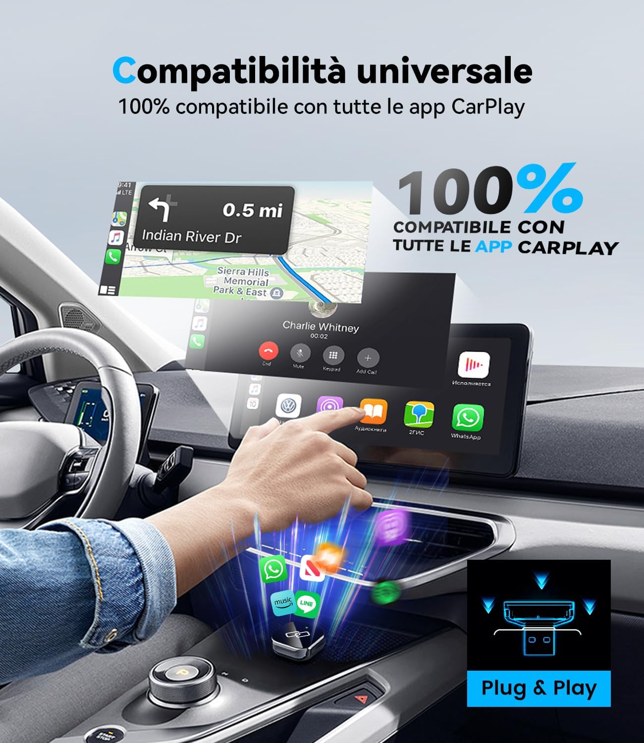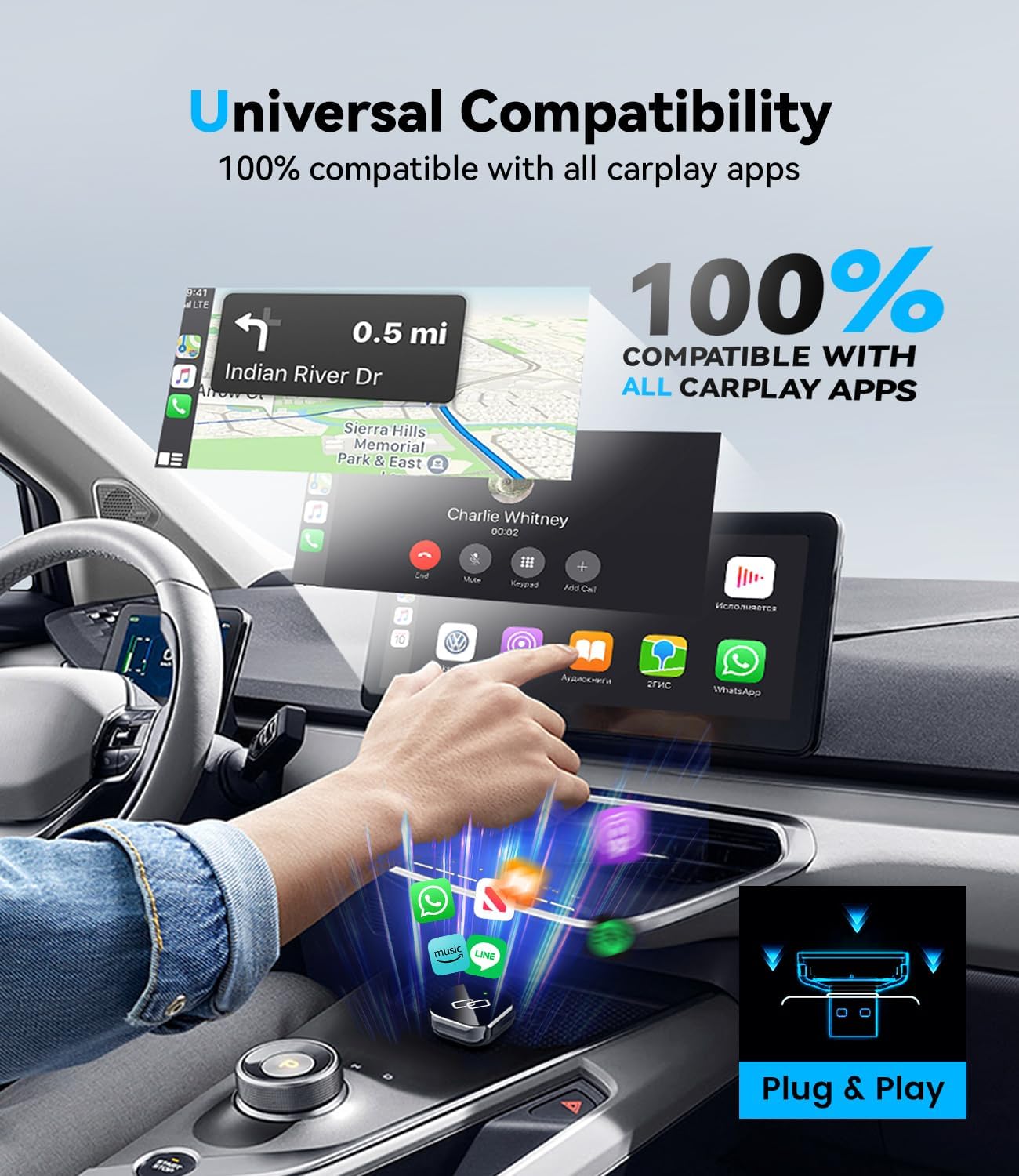 Equipped with 2.4GHz & 5GHz Dual Mold – This advanced adapter with built-in Wi-Fi 5.0 which has passed FCC-ID certification, offers significantly faster and more stable connections. Enjoy near-zero delay for seamless music streaming, real-time navigation and crystal clear hands-free calls, everything your wireless Car Play experience should be.