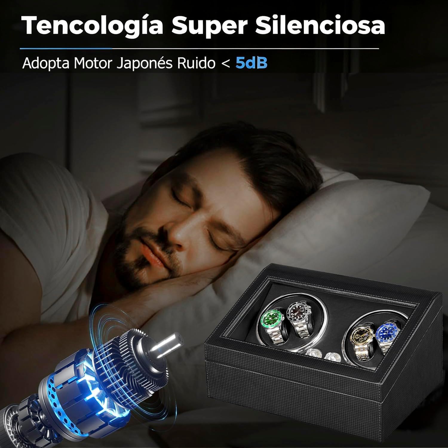 Love this winder and storage case. Super quiet, never know it’s turning unless I happen to look at it while it’s on. Light keeps my Citizen Eco drive watch charged. Completely happy with my purchase. Now I have to buy more watches …