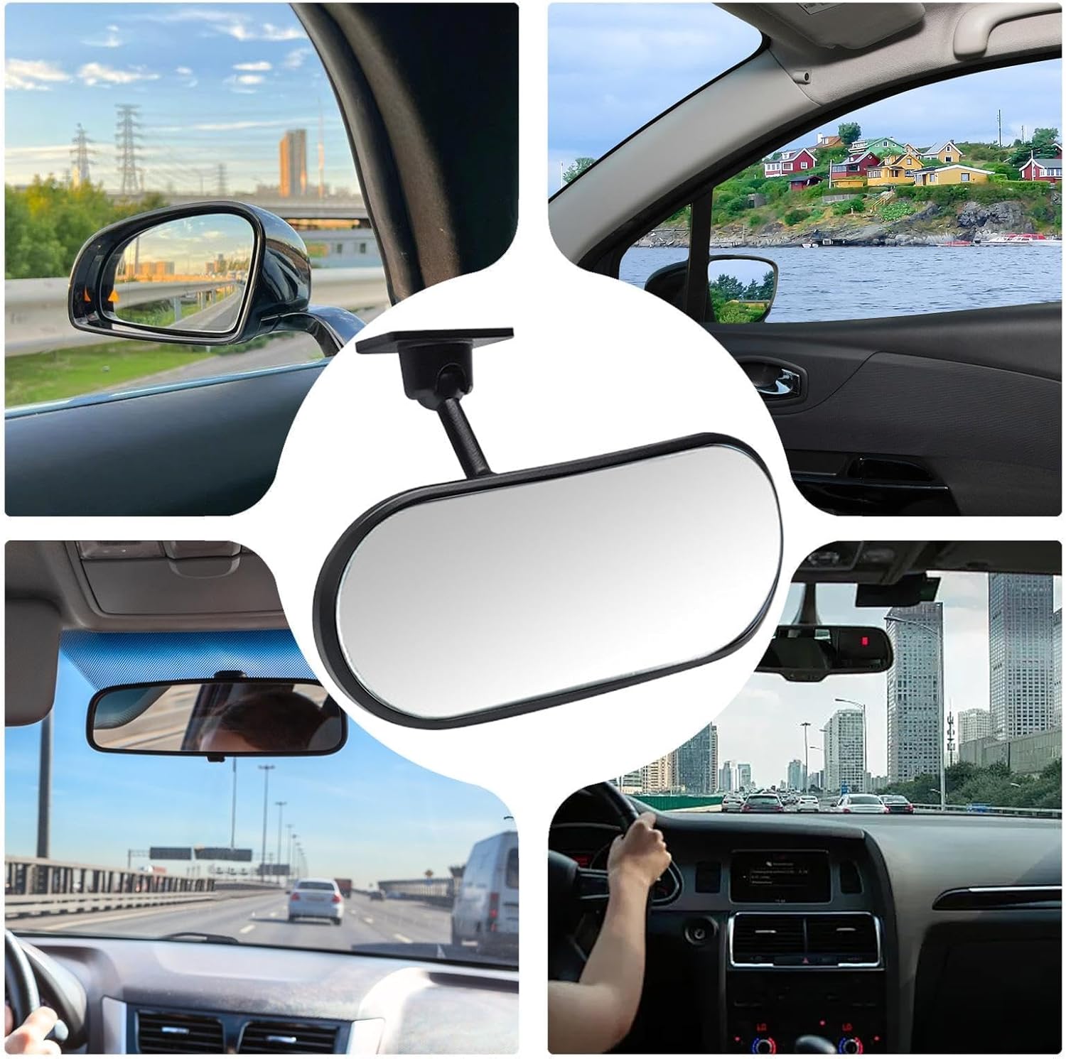 Swivel Adjustment – With a dual 360 degree adjustment angle, both the base and mirror frame can be freely rotated and adjusted to fit different car models and installation positions to ensure optimal visibility