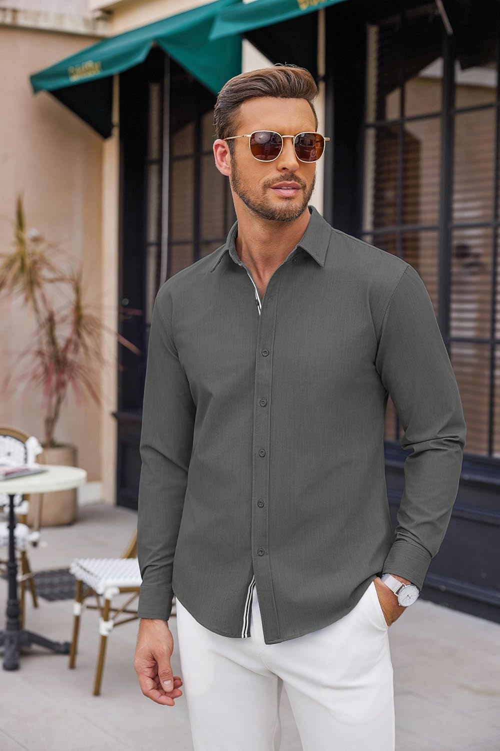 12 valoraciones en COOFANDY Men’s Casual Long Sleeve Button Down Shirts Stretchy Business Shirts Fashion Casual Shirts Regular Fit