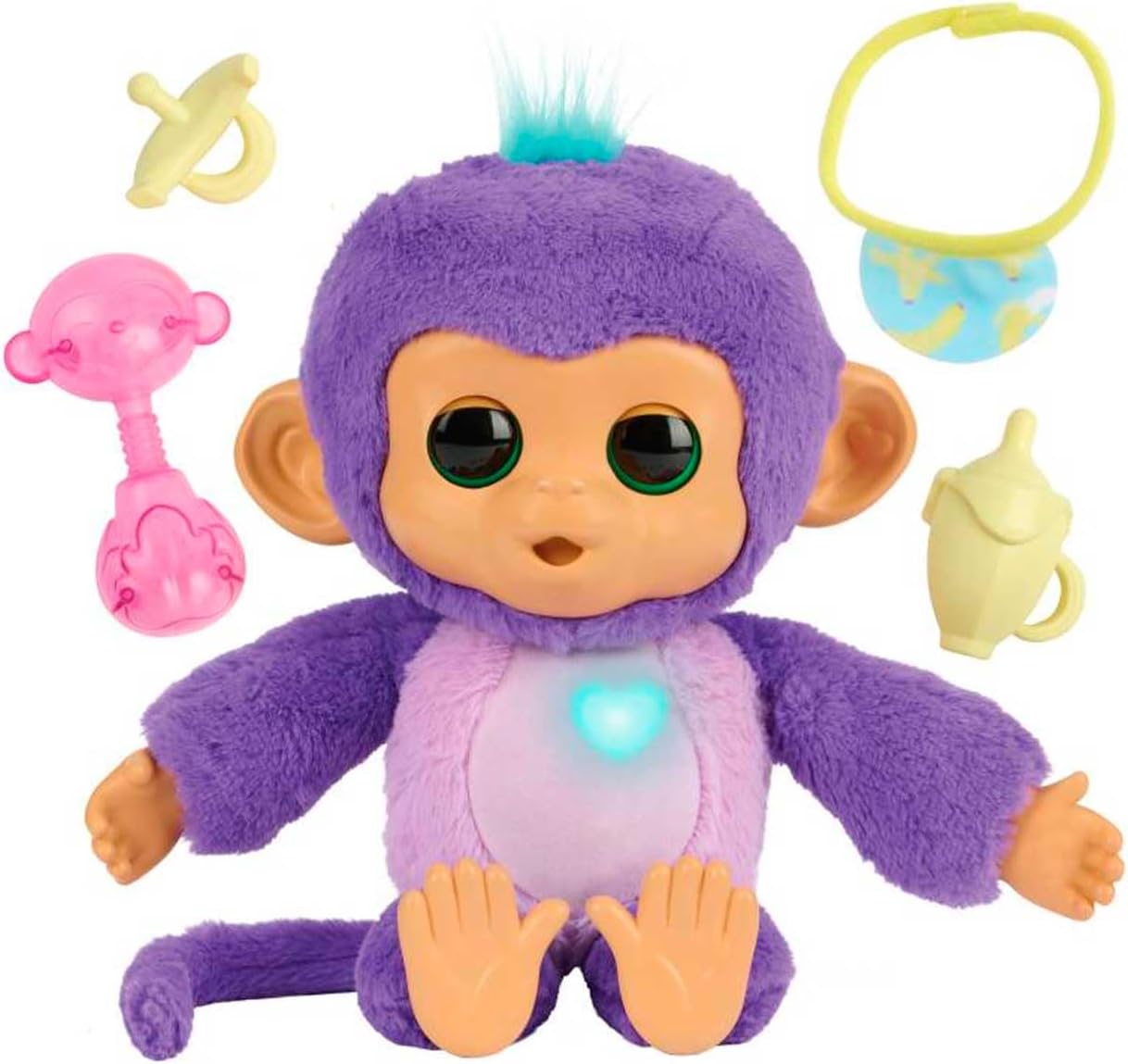 Interactive baby monkey with soft purple fur and luminous heart