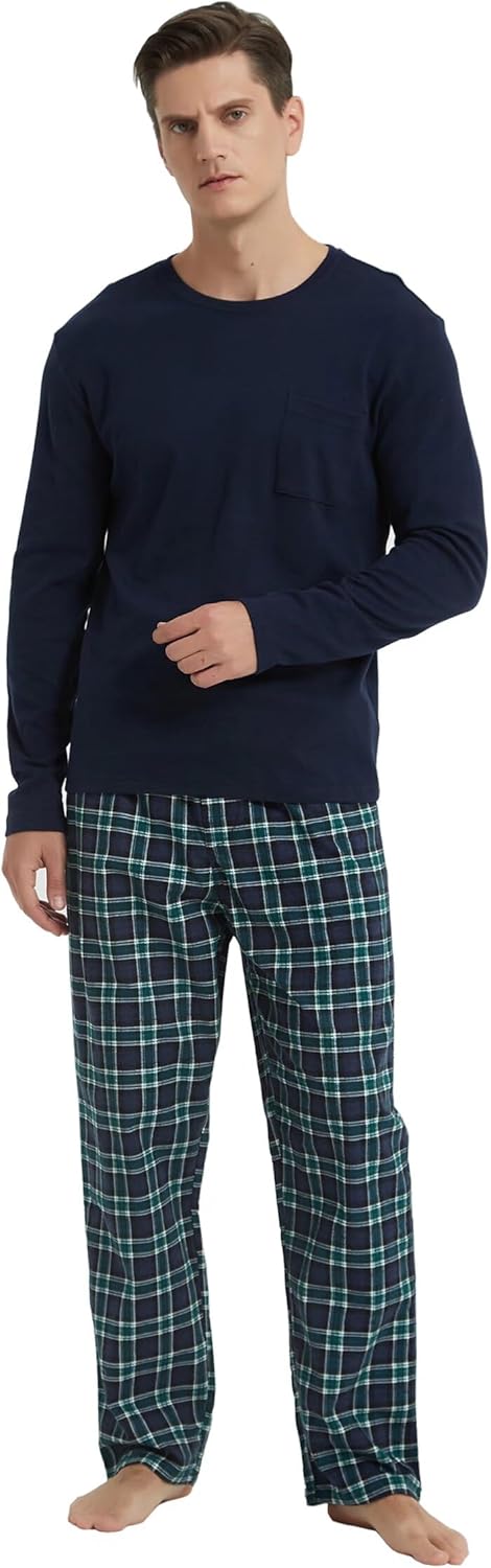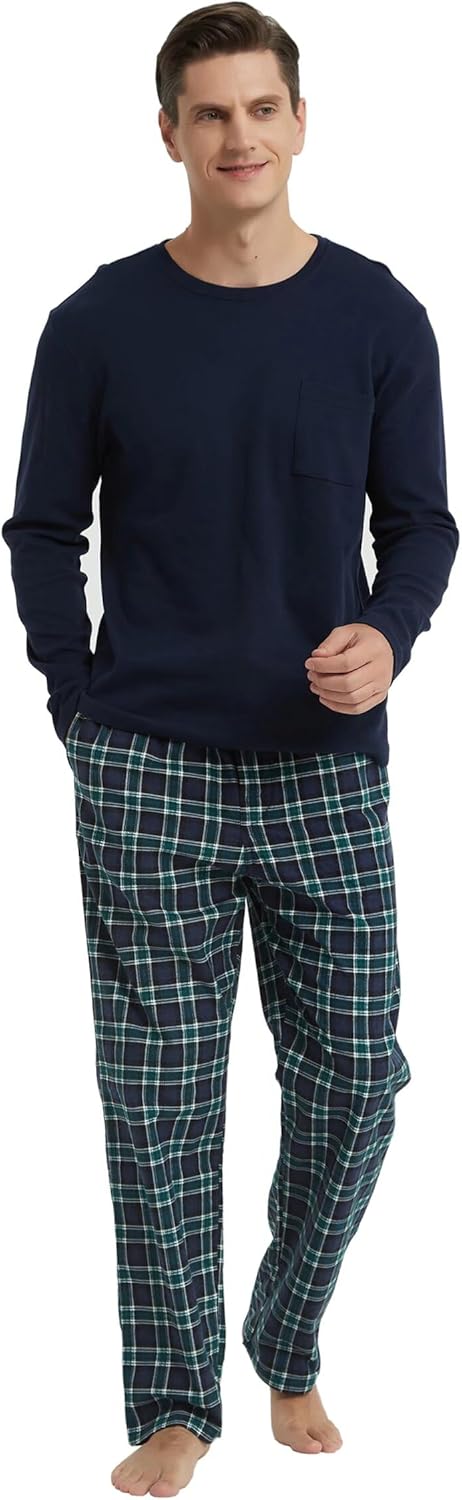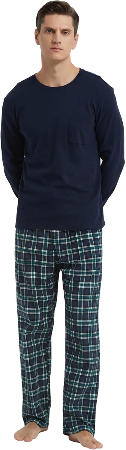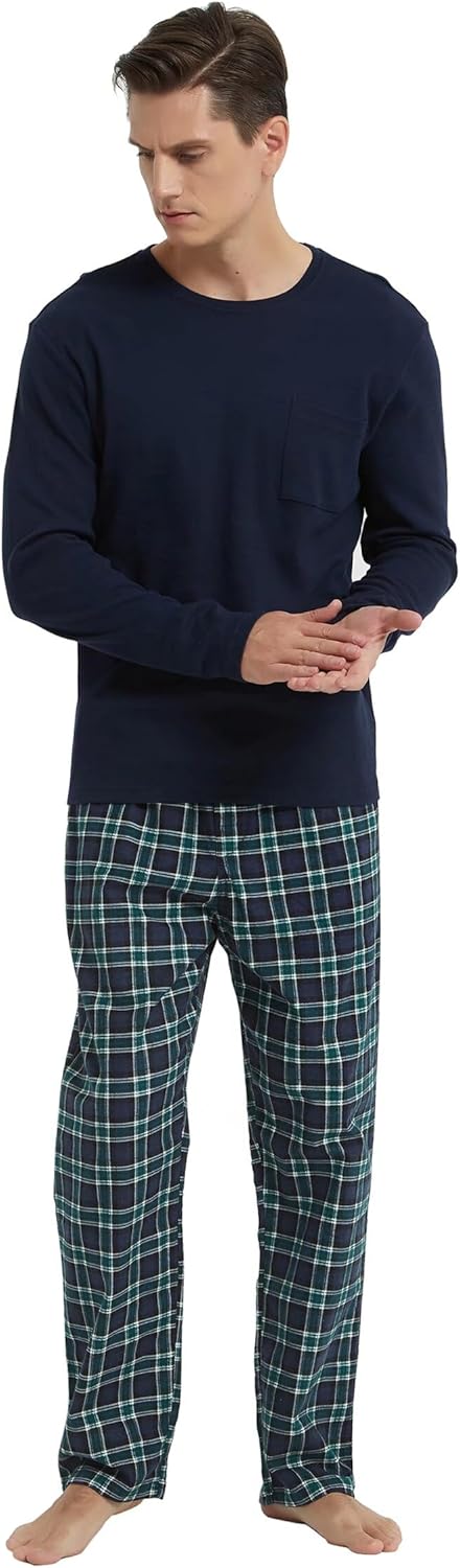Pijamas Hombre, Cómodo Ropa Dormir Largo Suave Conjunto de Algodón Hombre Manga Larga Cuello Redondo y Pantalones Cuadros, colores vivos calidad precio perfecto
