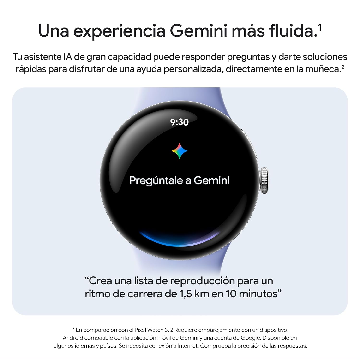 13 valoraciones en Google Pixel Watch 4 (41mm) – Android Smartwatch with Fitness Tracking, and Gemini Support – Polished Silver Aluminum Case – Lilac Sport Strap – LTE