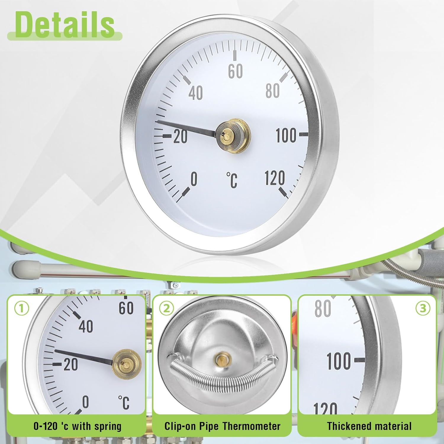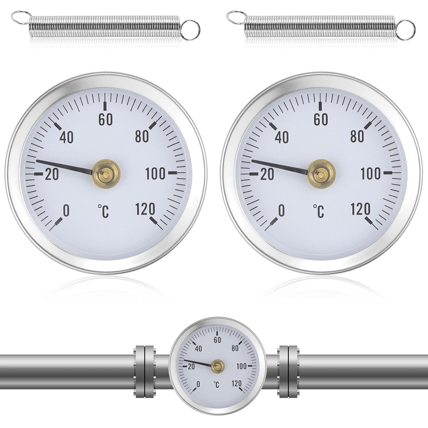 Easy to use: the bimetal thermometer can be easily attached to the heater with the built-in spring. Easy to carry, handle and install.