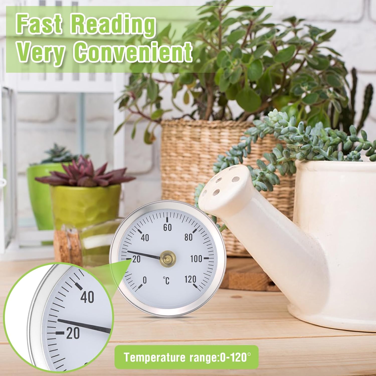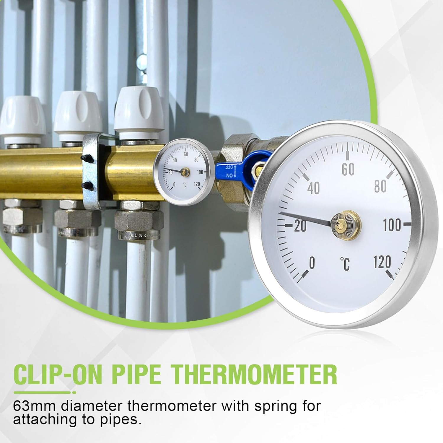 【TEMPERATURE TEMPERATURE】: The temperature measurement is displayed between 0 and 120°C on a scale of 1°C. Spring-loaded for 20-50mm tubes.