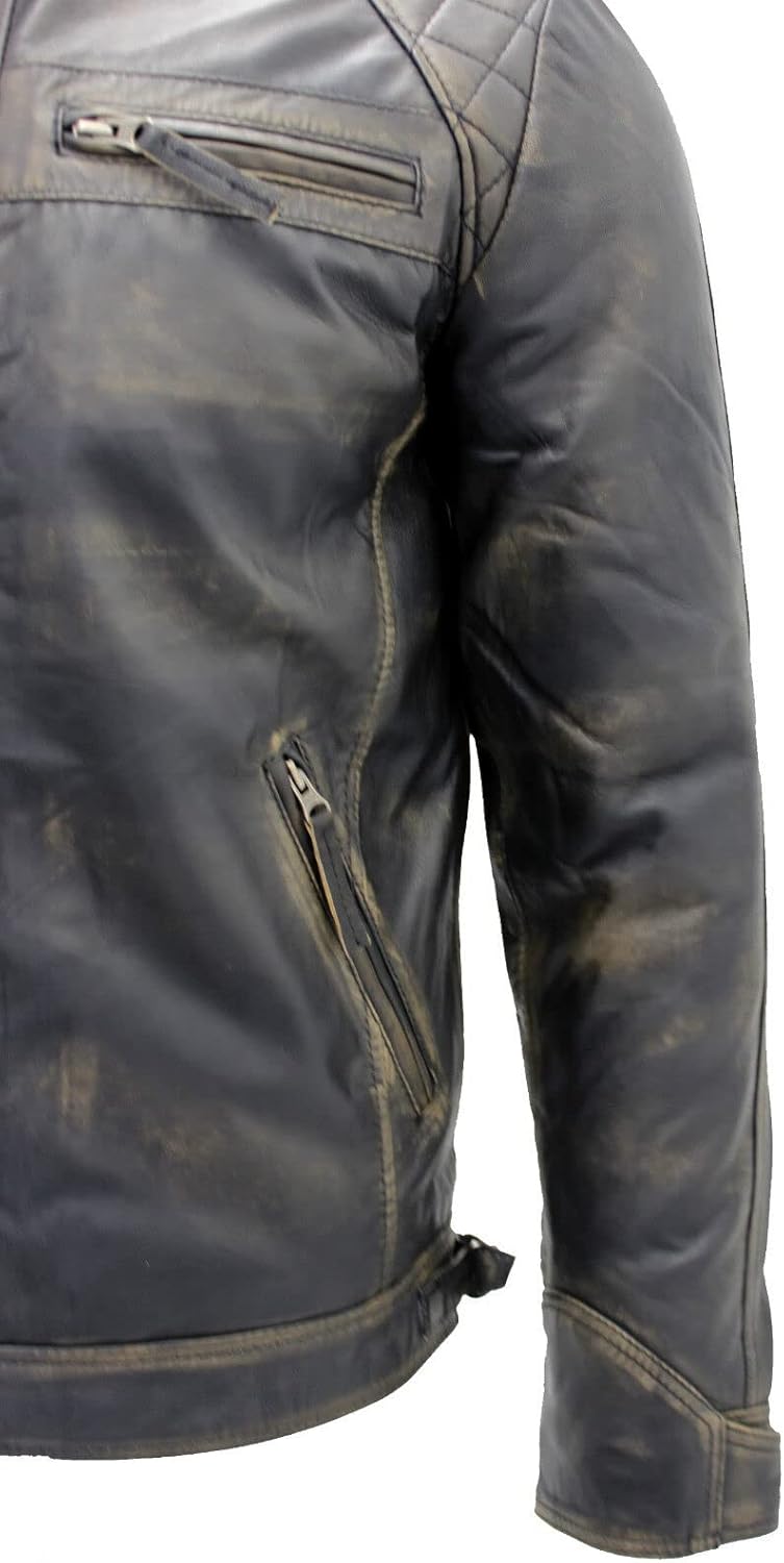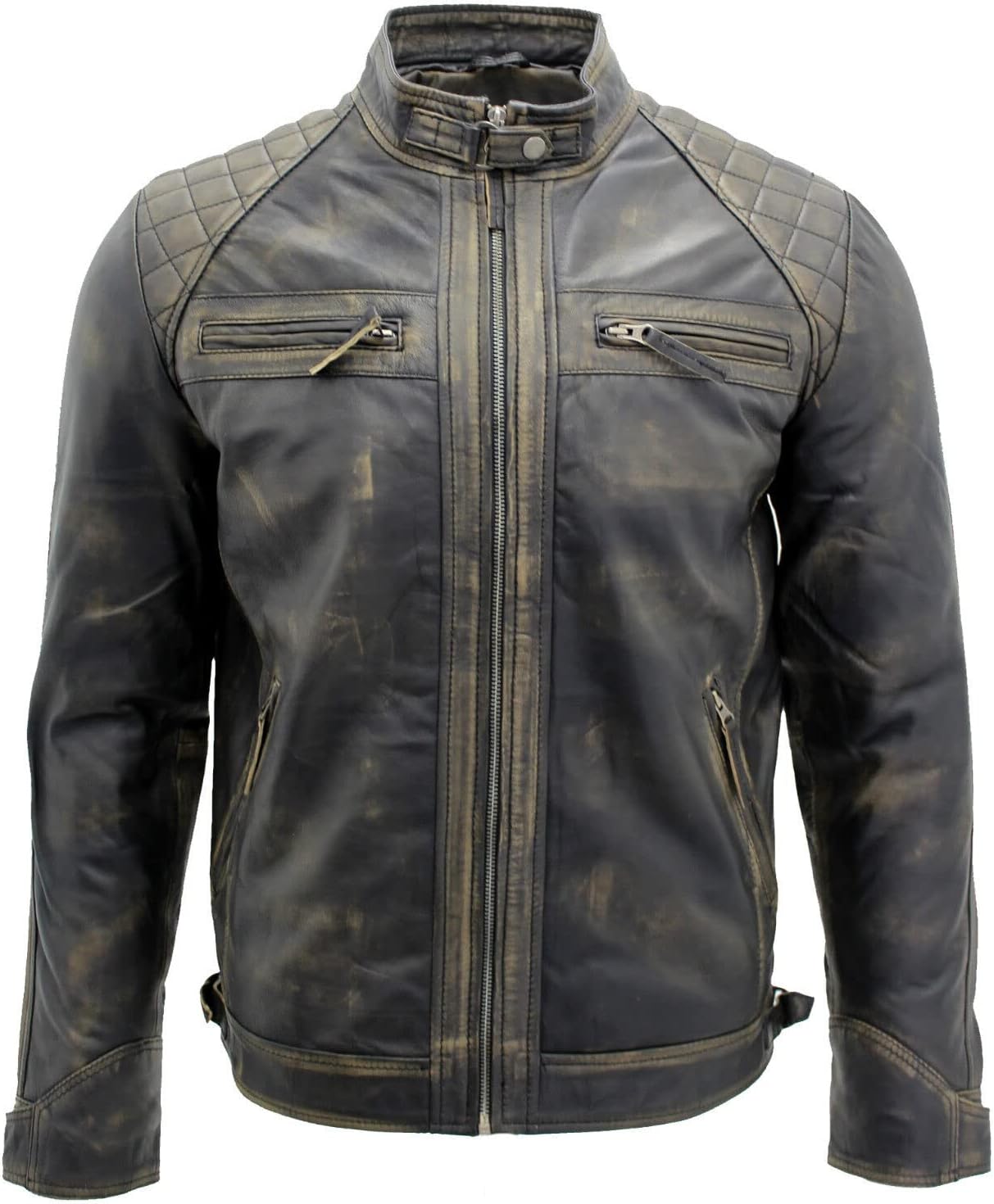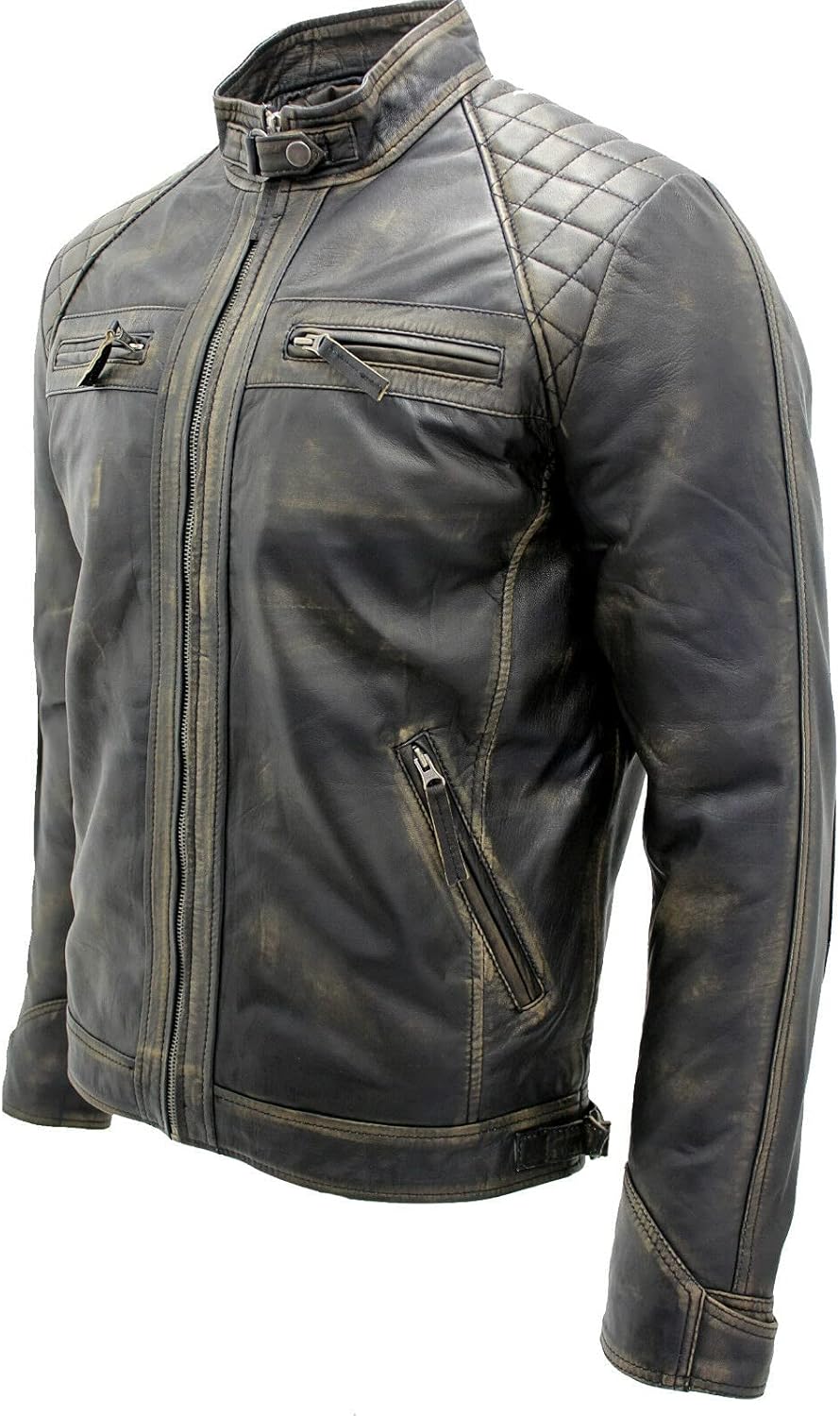 Good quality leather jacket.Came in at the right size, which is unusual for me as I’m not exactly a standard build.2 inside pockets, 4 outside. Good quality zippers for pockets and the front fastening.Leather is really soft, a bit stinky to start but that soon disappears and I don’t mind the smell of leather anyway!