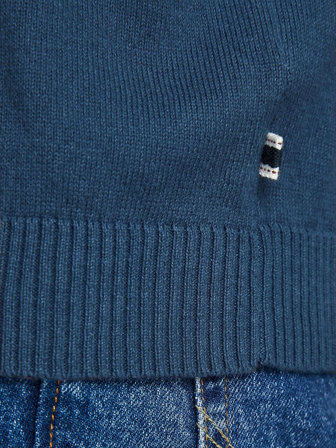 Der Pullover sitzt gut, nicht zu eng, was für Buchträger von Vorteil ist. Die Qualität und Verarbeitung ist gut. Werde ich wieder kaufen.