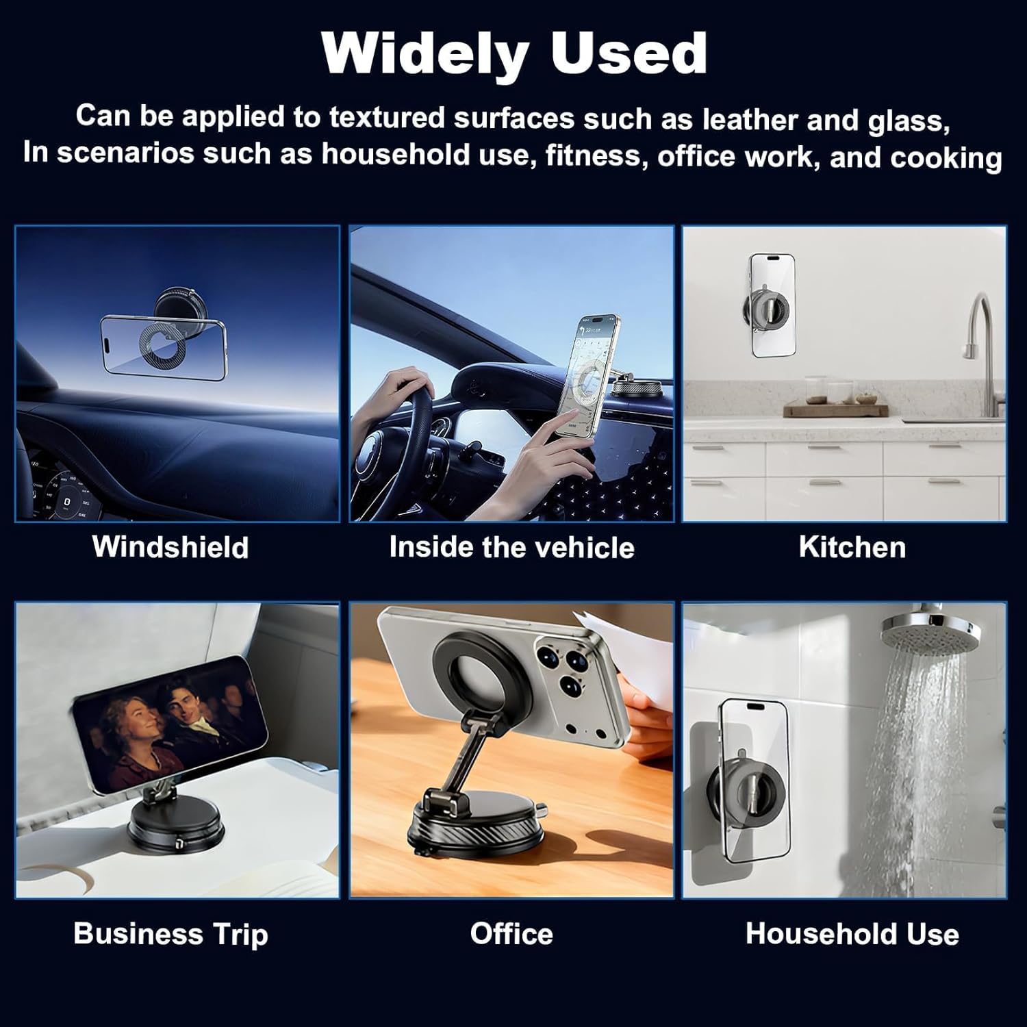 STRONG GRIP ON TEXTURED SURFACES – Enhanced suction base securely adheres to both smooth glass and textured surfaces such as grained leather dashboards – provides a reliable grip on tiles, mirrors and desks, making it the ultimate hands-free stand for driving, cooking, training and video calling