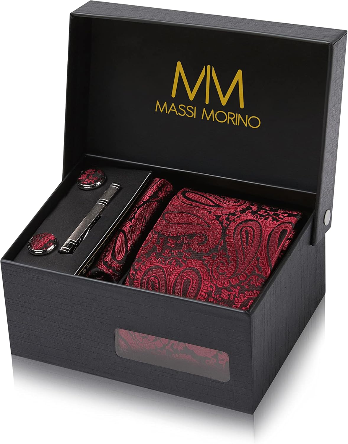 Massi Morino Men’s Ties and Handkerchiefs with Cufflinks, Tie Clip Set I Accessory Men’s Suit Modern for Wedding