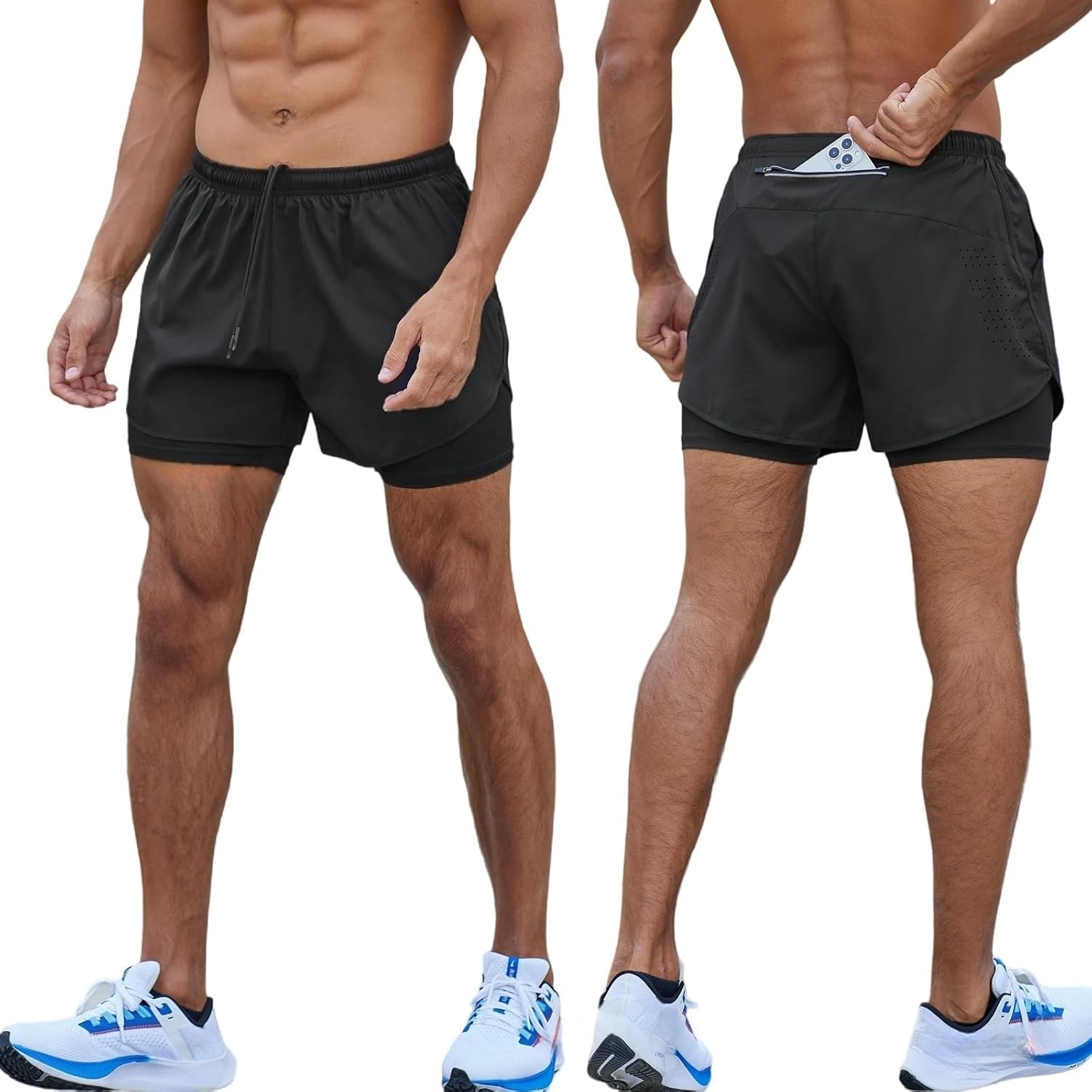 Men’s Shorts Sports Running Shorts 2 in 1 Pocket Running Quick Dry Workout Shorts