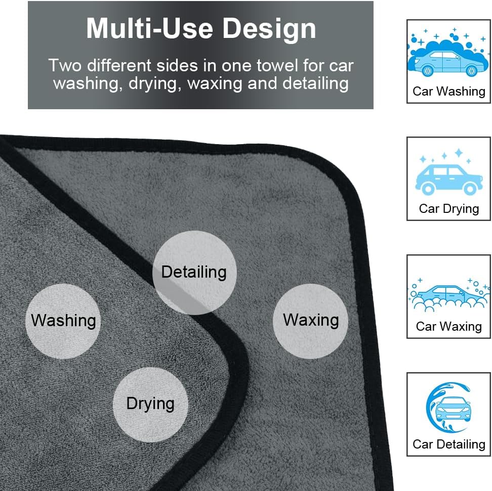 【THICK MATERIAL, DOUBLE LAYER DESIGN】Made with premium thick coral fleece, these microfiber cloths are soft and breathable, while being durable and thick. They are lint-free, odorless, and resistant to moths, mildew and tearing. Their durable design will not scratch surfaces, paint, stainless steel or clear coatings, making them ideal for car care, paint polishing, and streak-free drying.