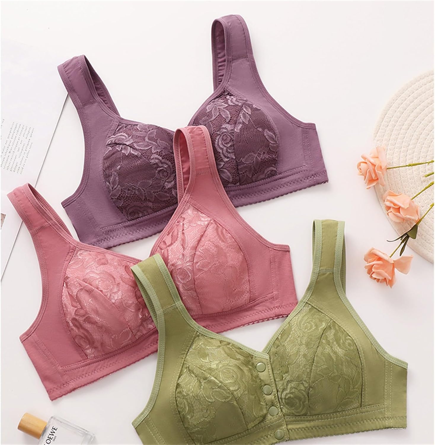 Plus Size Bra with Adjustable Straps and Sexy Lace Front Shaping Cup for Women Washing Machine Bras