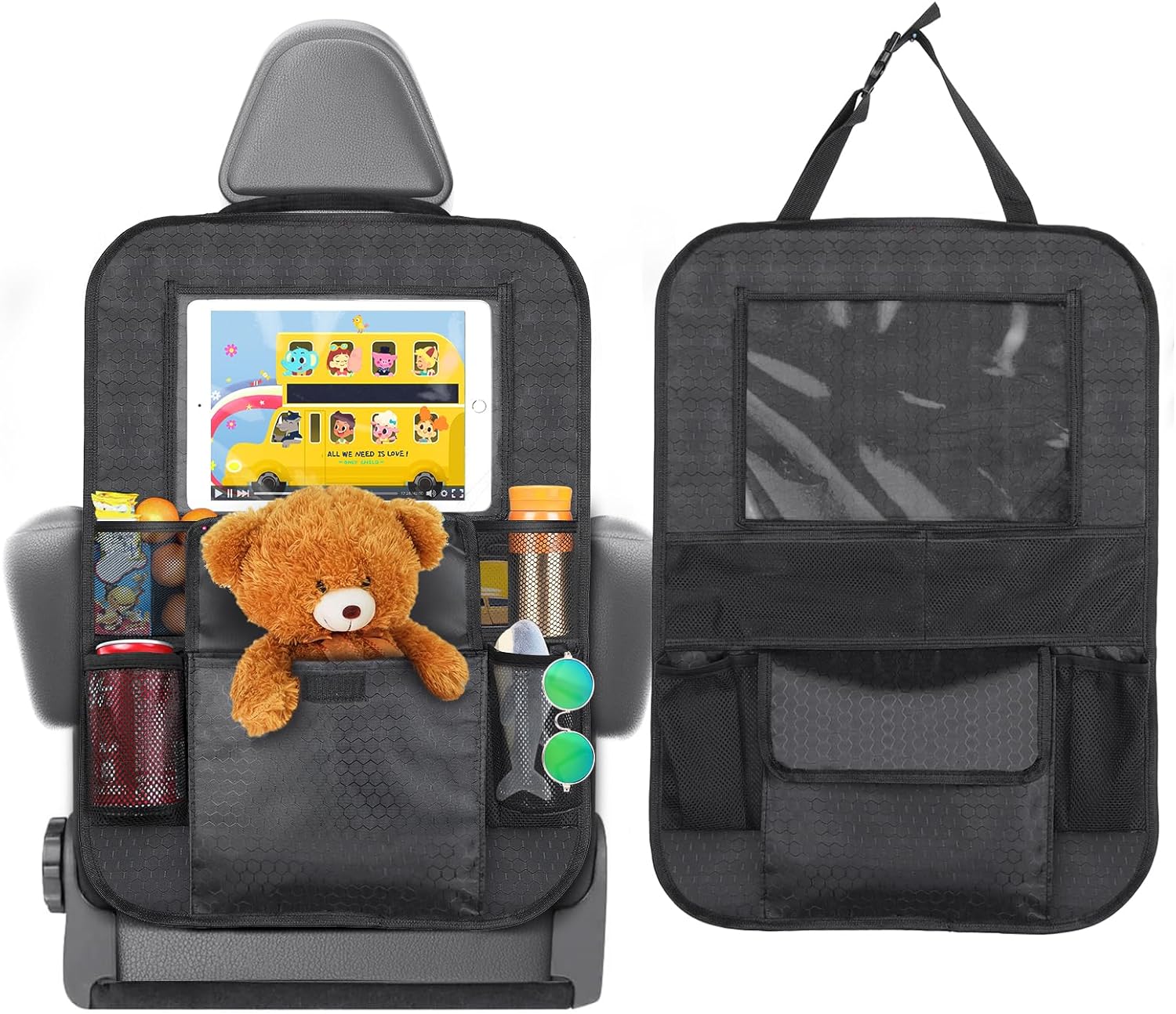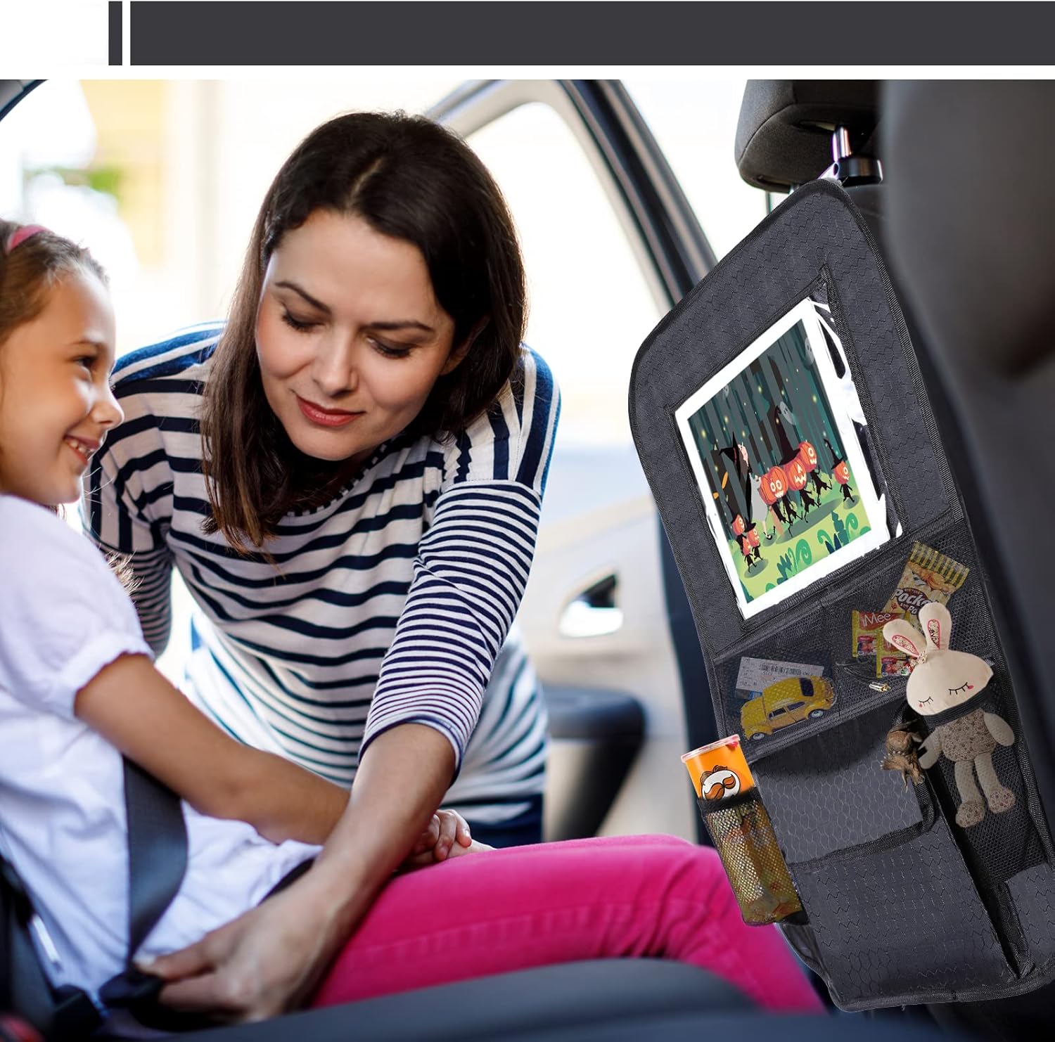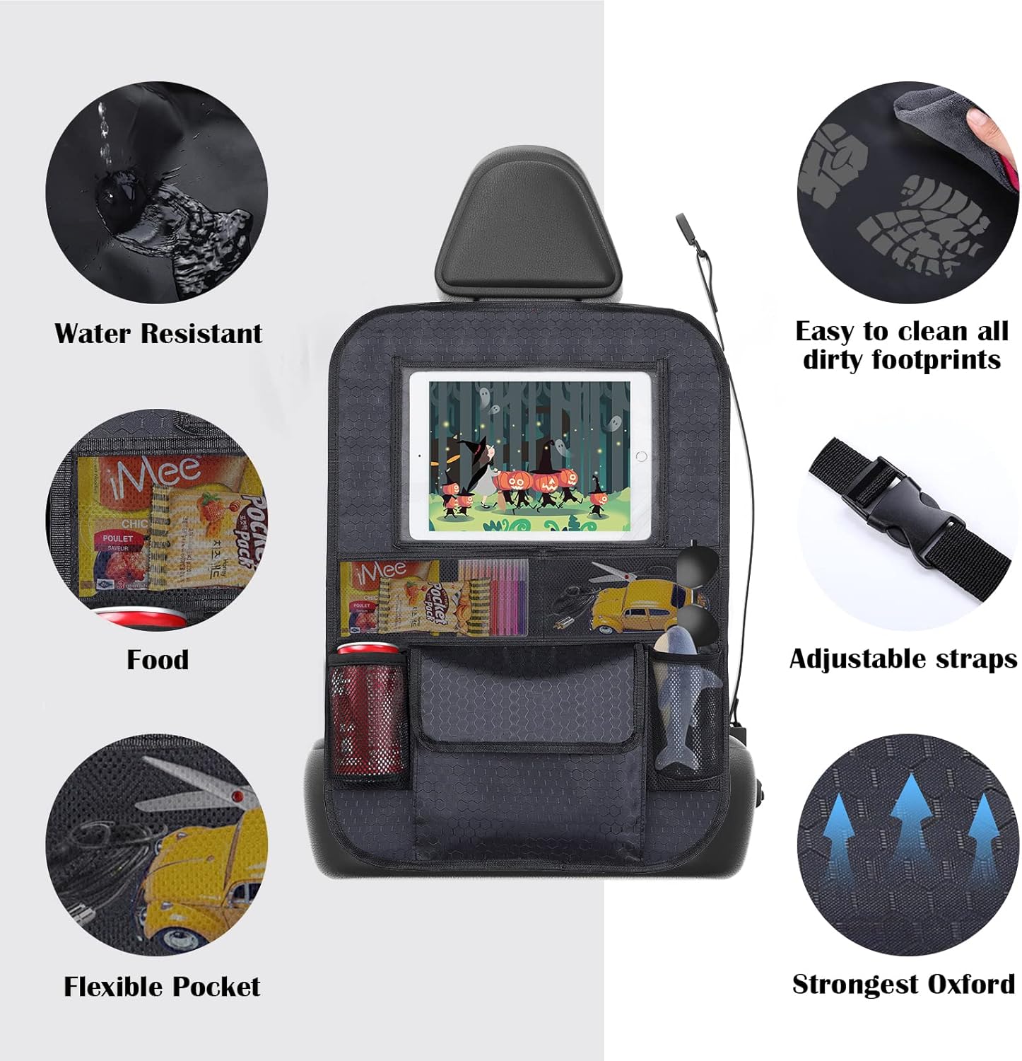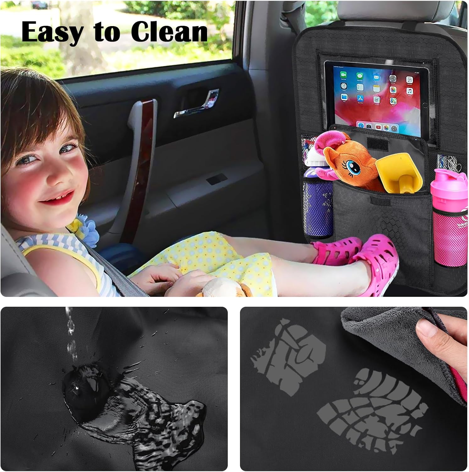 Durable and easy to clean: Made of 600D Oxford cloth, nylon (mesh pocket) and waterproof cloths, the car backrest protector protects the front seats from scratches, dirt and wear, so that you can enjoy driving. Waterproof and easy to clean, for example, with a damp cloth, for families with small children, the car back protector is an indispensable accessory for the car.