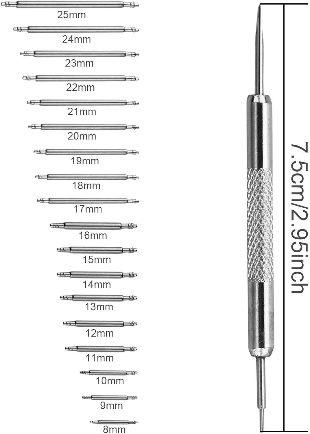 Pop bar tool and watch pin are made of high quality stainless steel material.
