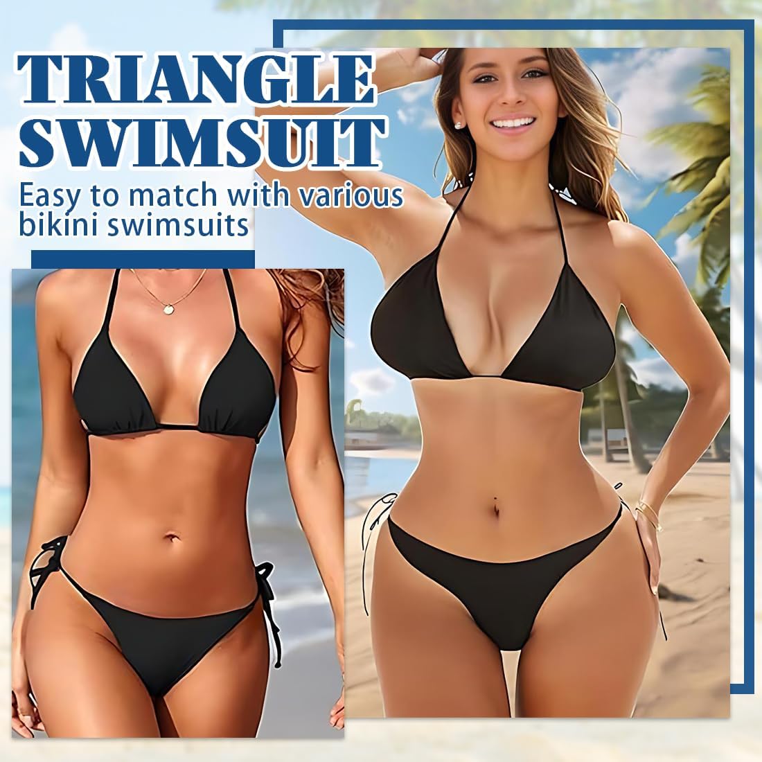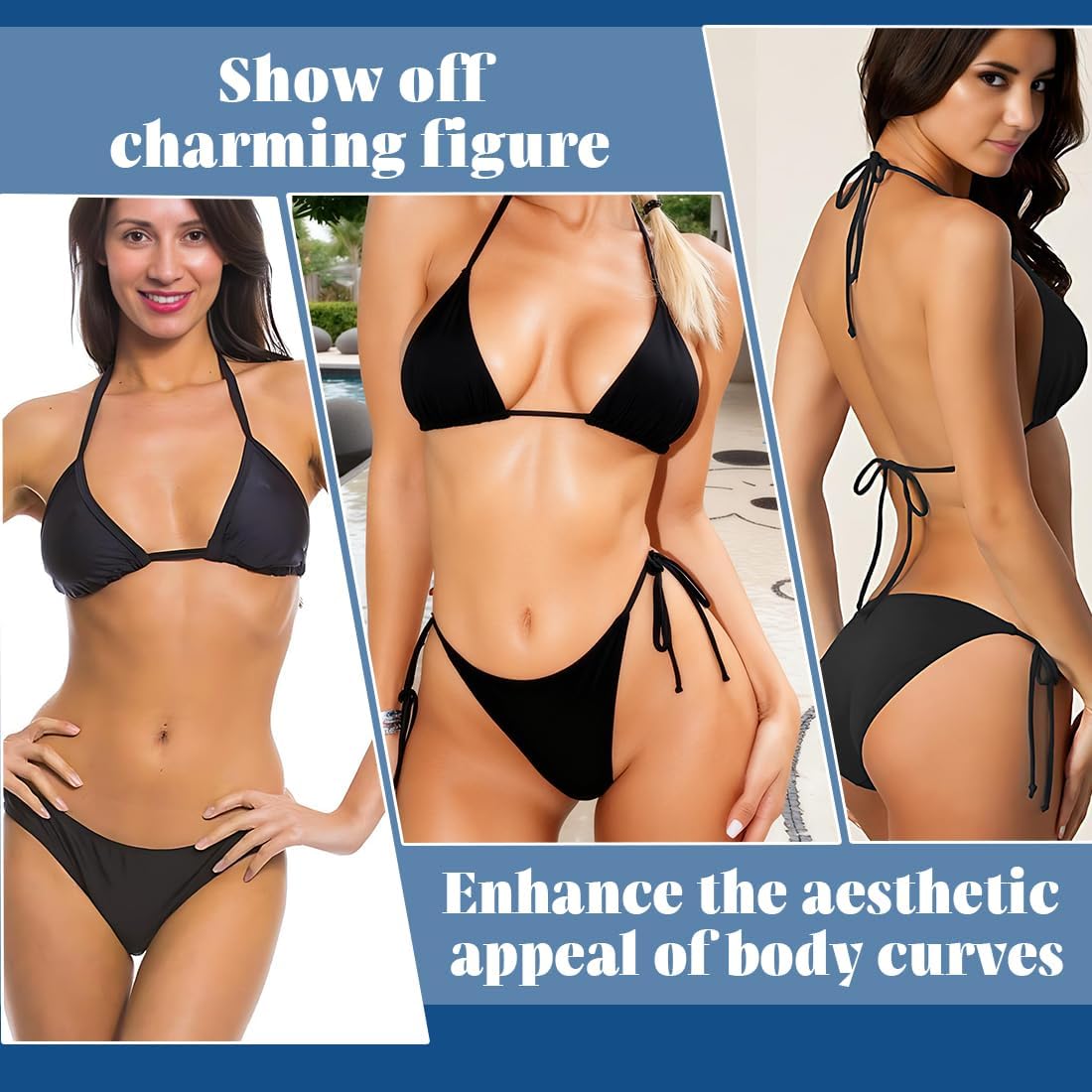 【Sensual and Elegant Design】 This 2 piece bikini features halter triangle top with pearl details and low waist panties that elegantly enhance feminine cures. Deep V neckline creates an elongating visual effect, ideal for women looking for sophisticated and bold style at the beach or pool.