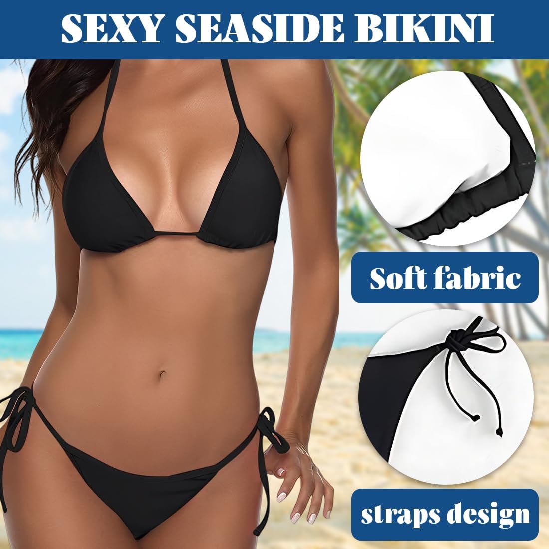 【Comfort & Custom Fit】Adjustable halter straps and low waist with tie details allow you to customize the fit to your preference. No uncomfortable underwire but with optimal support, it offers freedom of movement while maintaining a sensual and contemporary style.