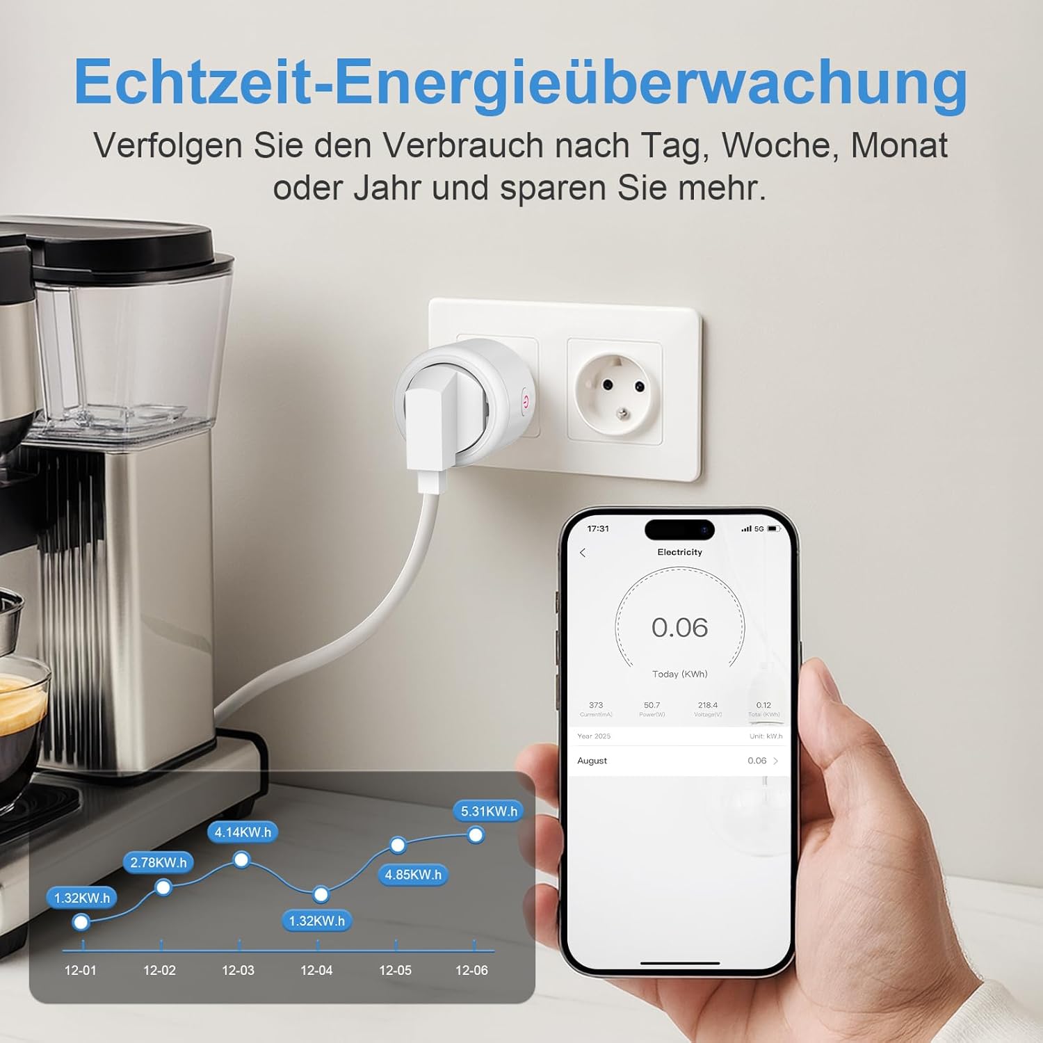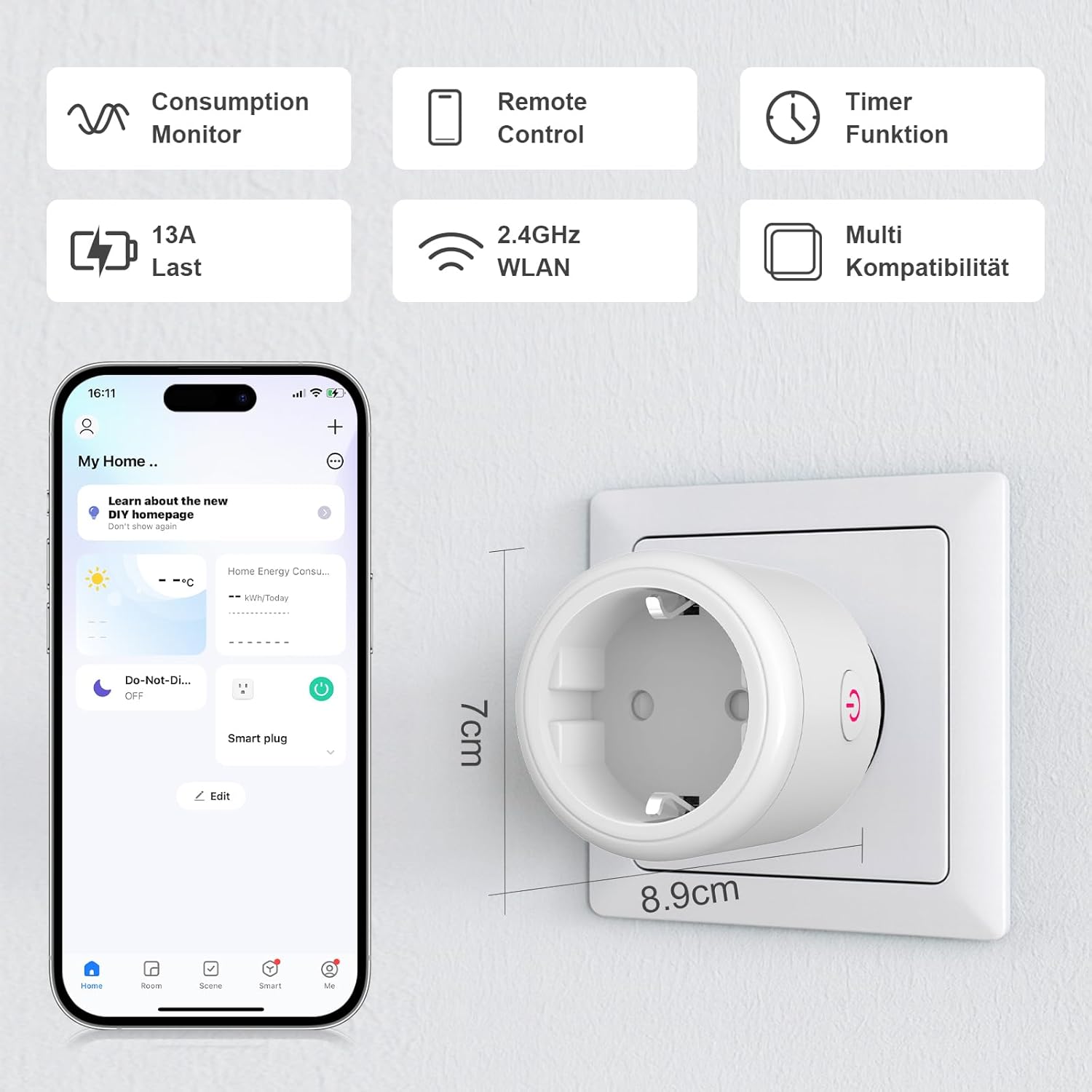 SURFOU Wifi Smart Plug with Power Consumption, Programmer Alexa Plug, Smart Outlet with Timer, APP & Voice Remote Control, Compatible with Alexa, Google Home and SmartThings