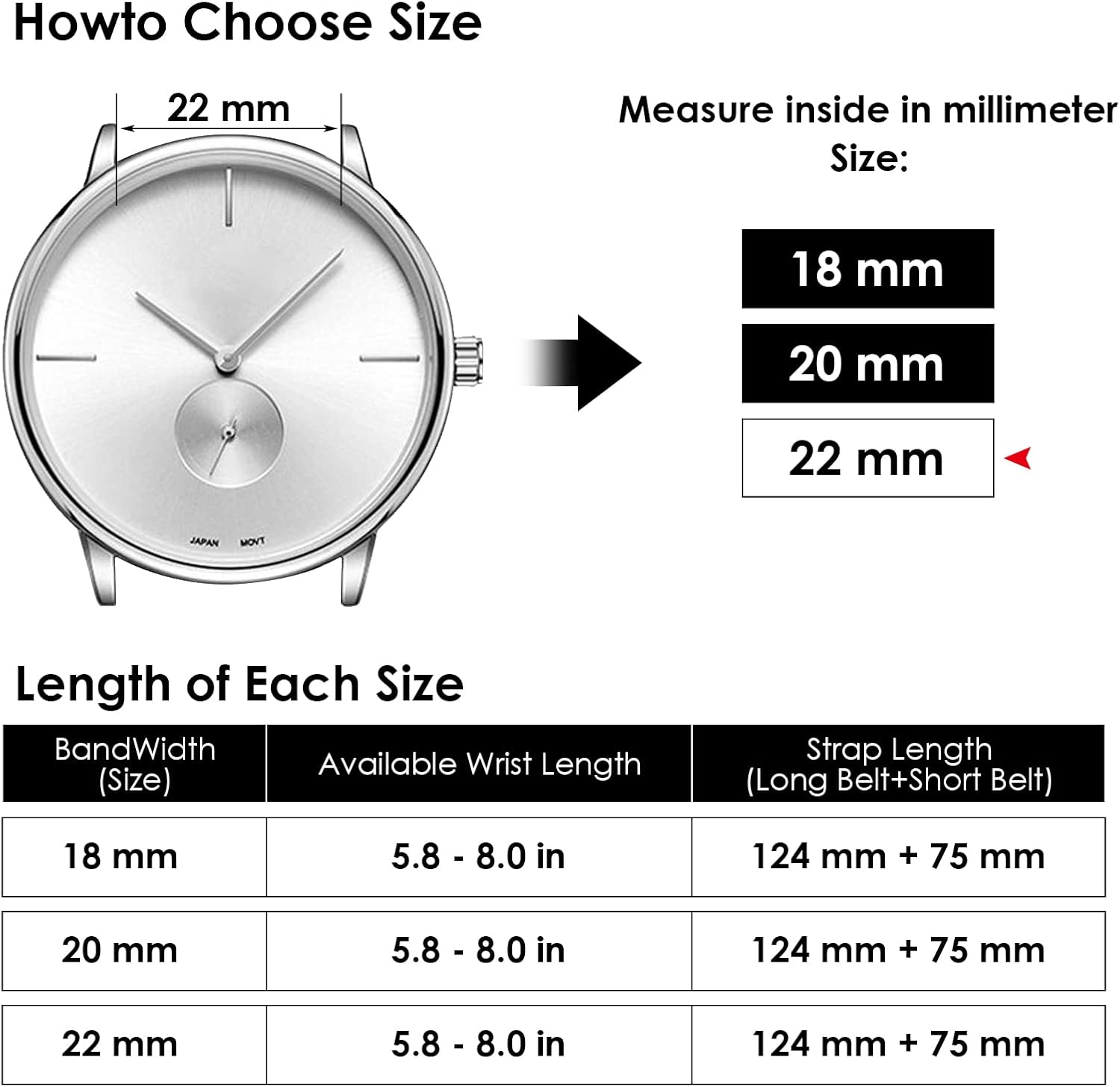 Applicable range: 17.5-22cm/6.88-8.66in