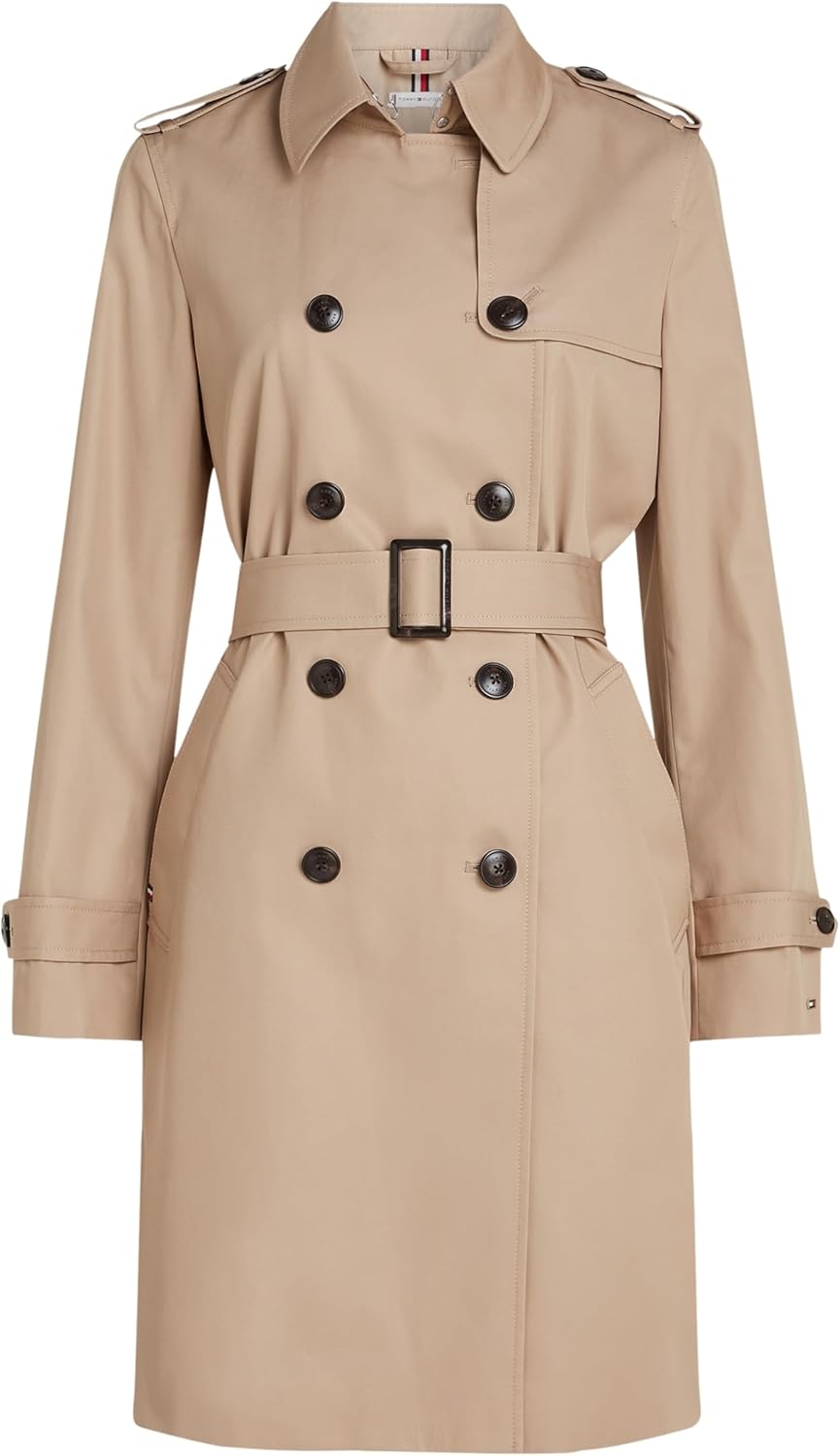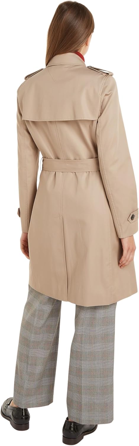 This women’s Tommy Hilfiger sporty trench coat is a long sleeve double-breasted trench coat