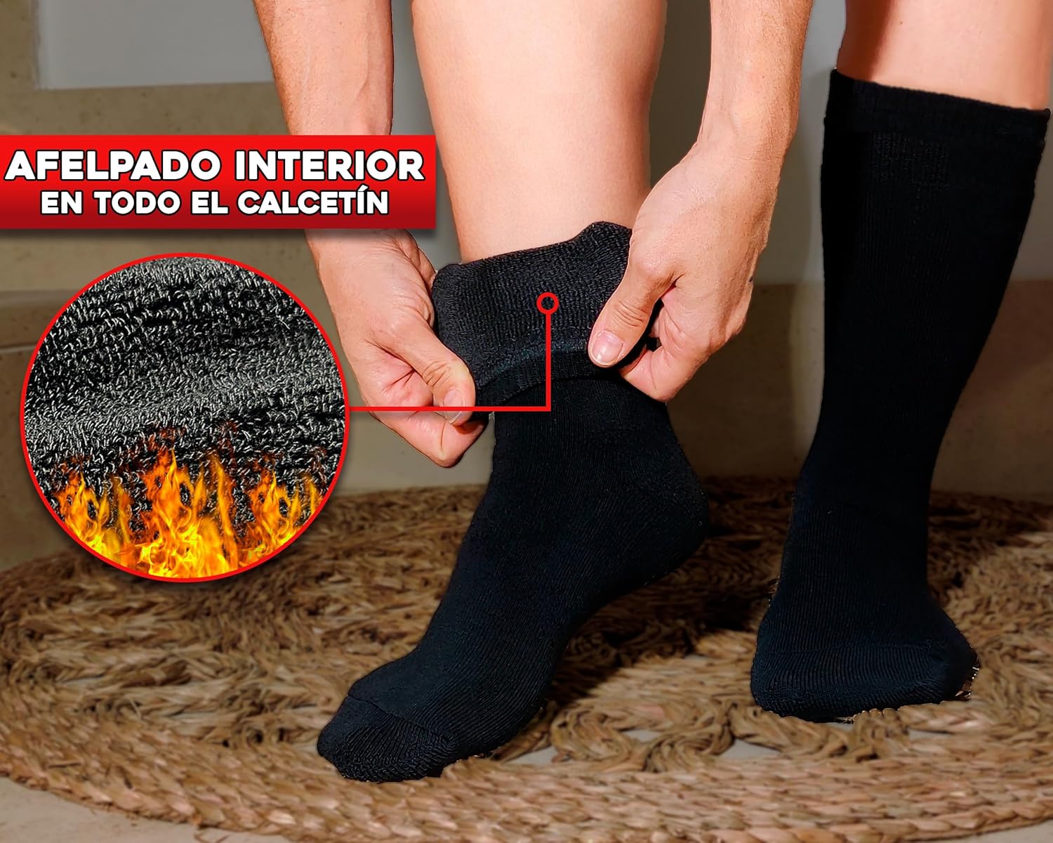 Calcetines muy calentitos para los dÃas de frio. Vienen 3 pares de media caña muy útil cuando el frÃo arrecia. Buena calidad precio. Aunque me parece que con en poco tiempo y lavados se deteriora un poco.