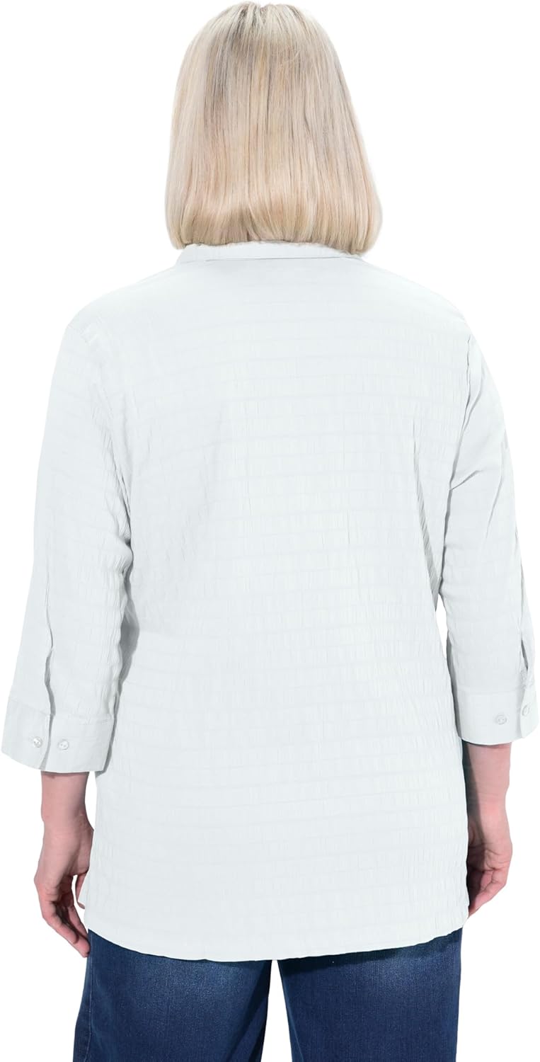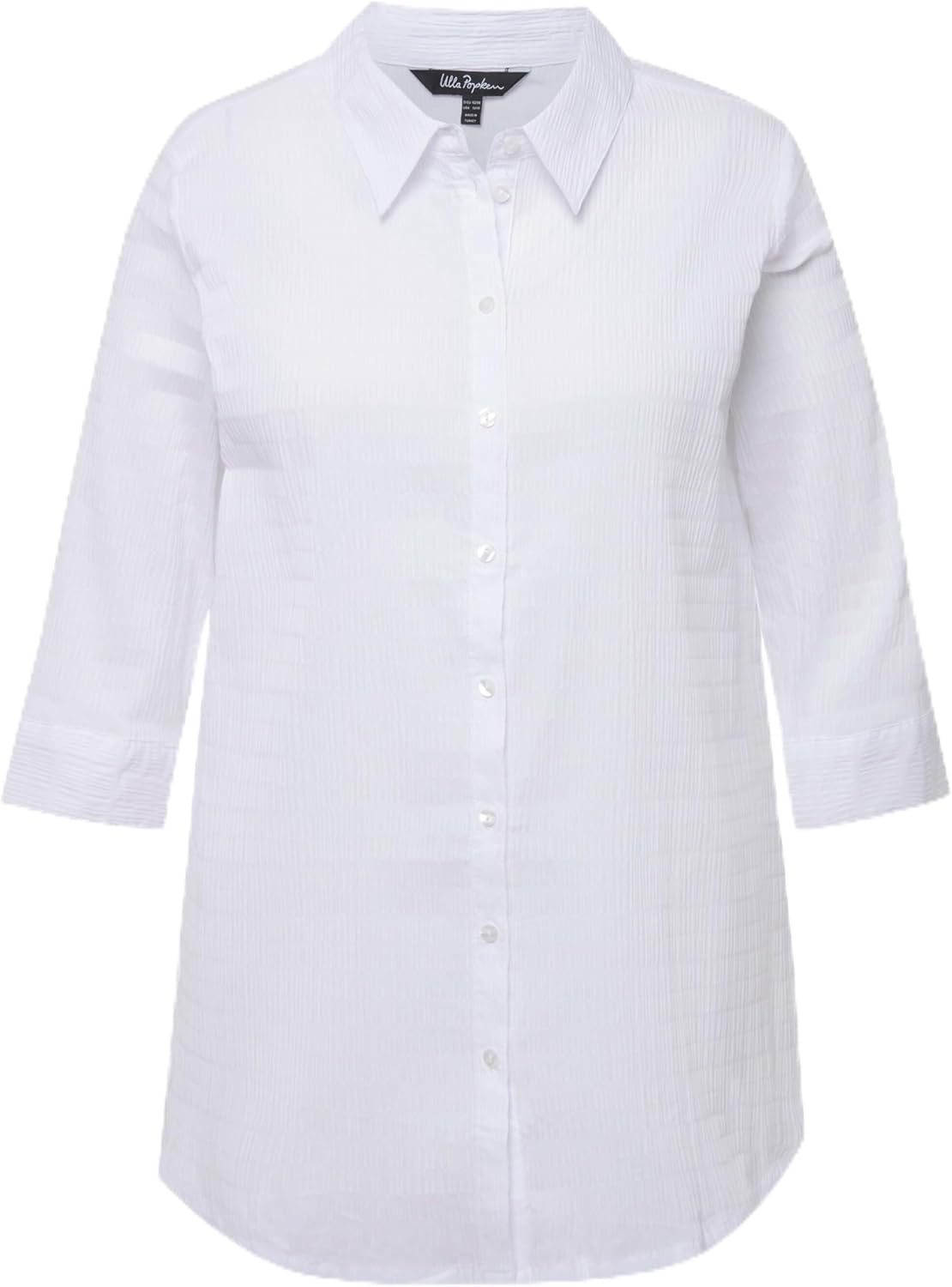 Ulla Popken Blouse, Bubble Fabric, Shirt Collar, 3/4 Sleeves 797446