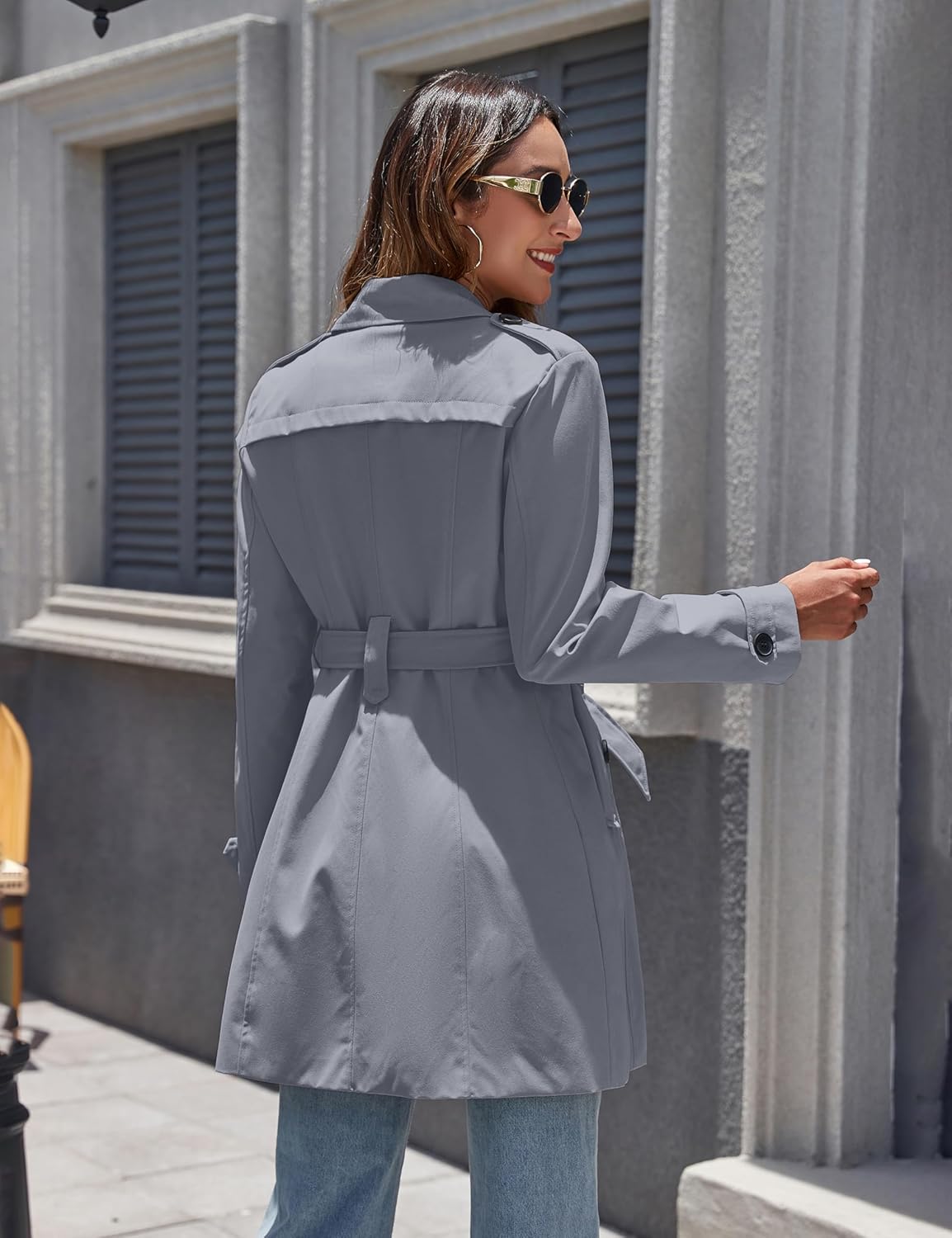 La gabardina es de buena calidad y bonita. El largo esta bien para su tallaje pero de espalda es demasiado pequeña. La he medido y no corresponde con la tabla de medidas que ponen. El cinturon es demasiado largo. La devolvi. Pedi mi talla habitual que es la M y me quedaba muy estrecha de espalda llevando solo una camiseta puesta.
