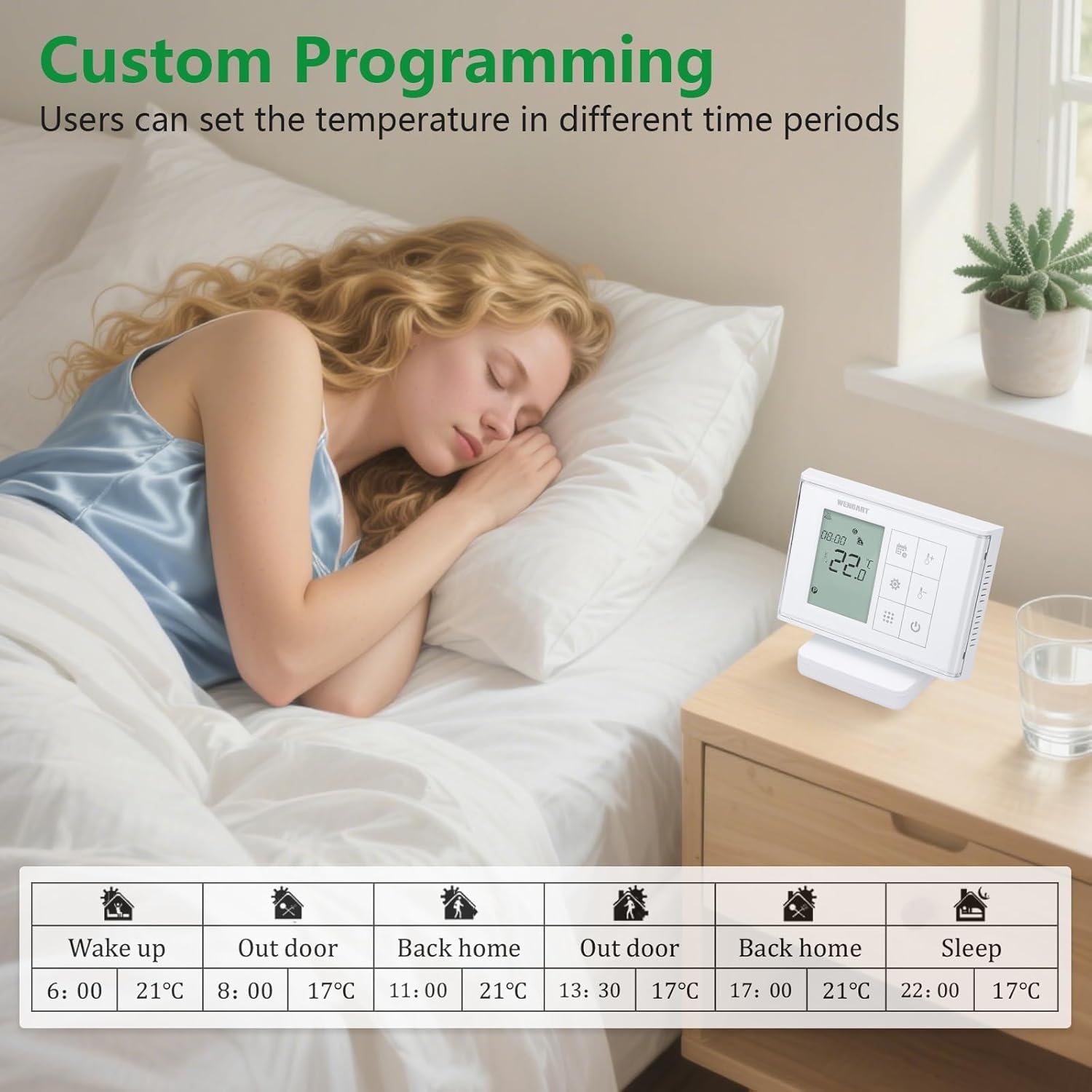 Stable Signal, Precise Temperature Control for Convenience: This battery-powered thermostat features strong anti-RF capability, stable wall penetration and precise control of ambient temperature, which maintains a comfortable experience throughout the day while saving energy