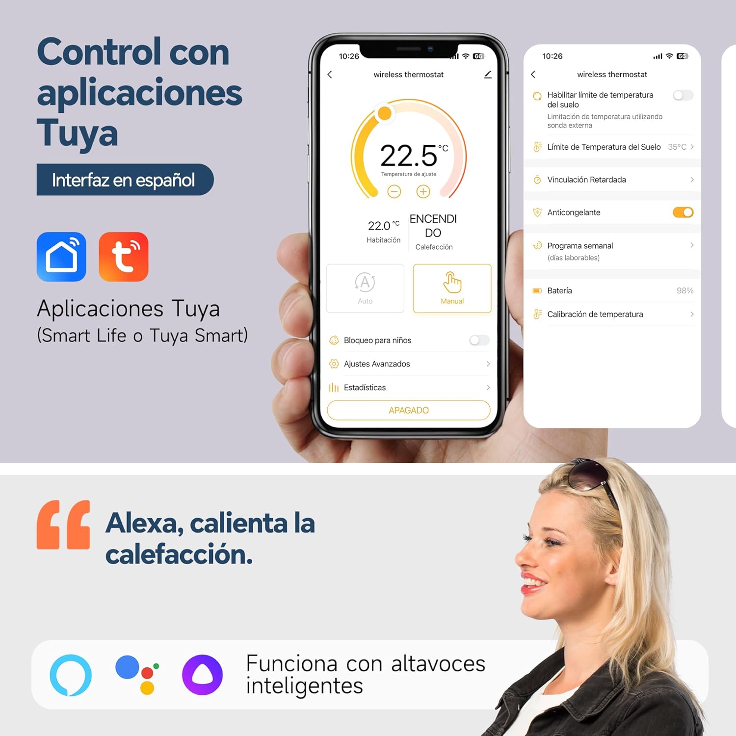 VOICE CONTROL: The thermostat is compatible with Alexa and Google Assistant. You can turn the thermostat on and off at will with your voice or from your mobile phone. Even at night, when there are no lights on, you can ask Alexa what your home temperature is or look at it from your mobile phone, so you can know what the current temperature is and change the desired temperature without looking at the thermostat.