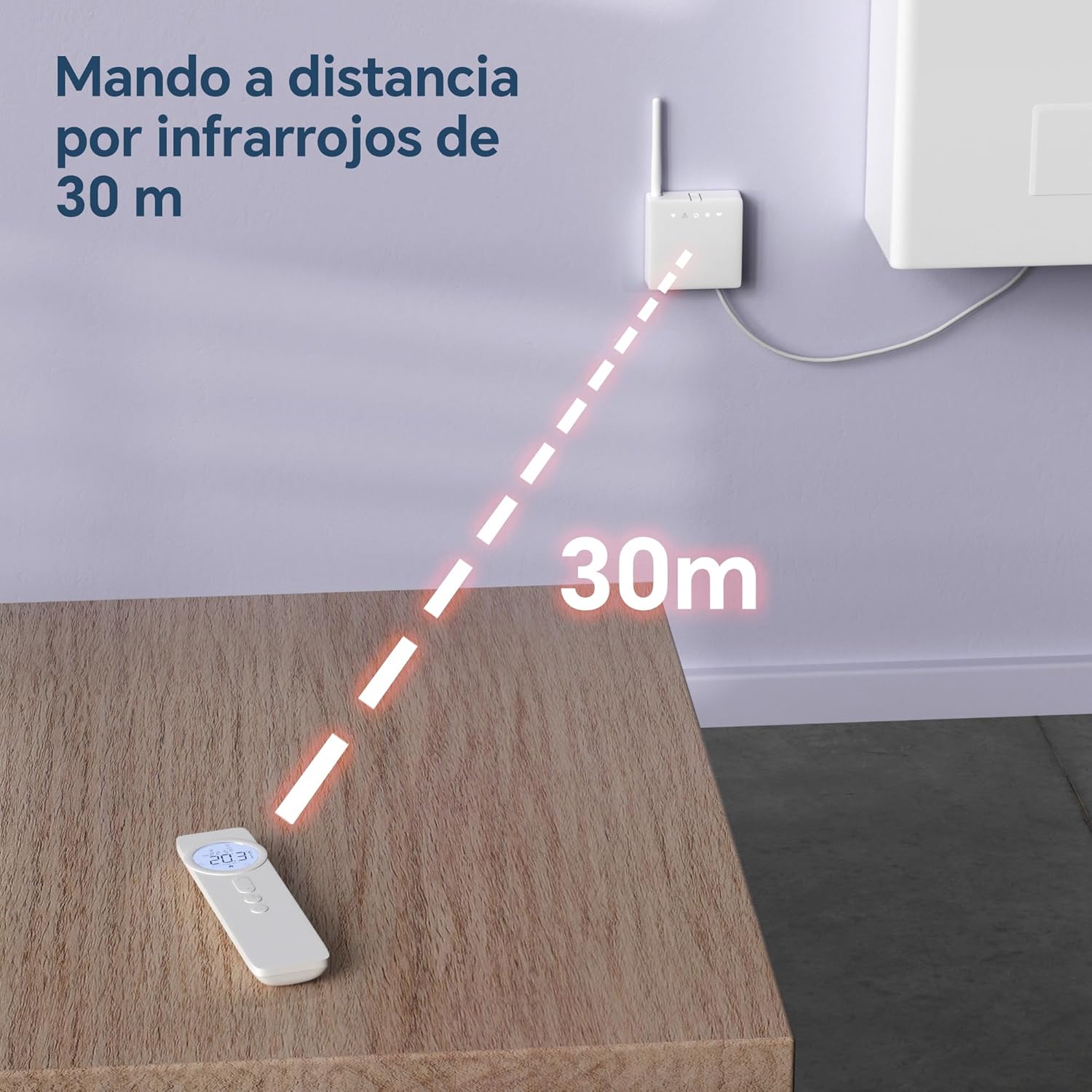 El sensor, similar a un mando a distancia, ilumina el display cuando se pulsa alguna tecla, obteniendo una visión correcta. Y, además, es muy fácil de programar. Requiere una aplicación para el móvil, con lo que tienes el control desde el lugar que desees.