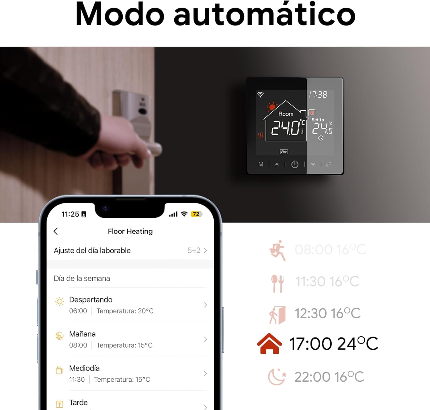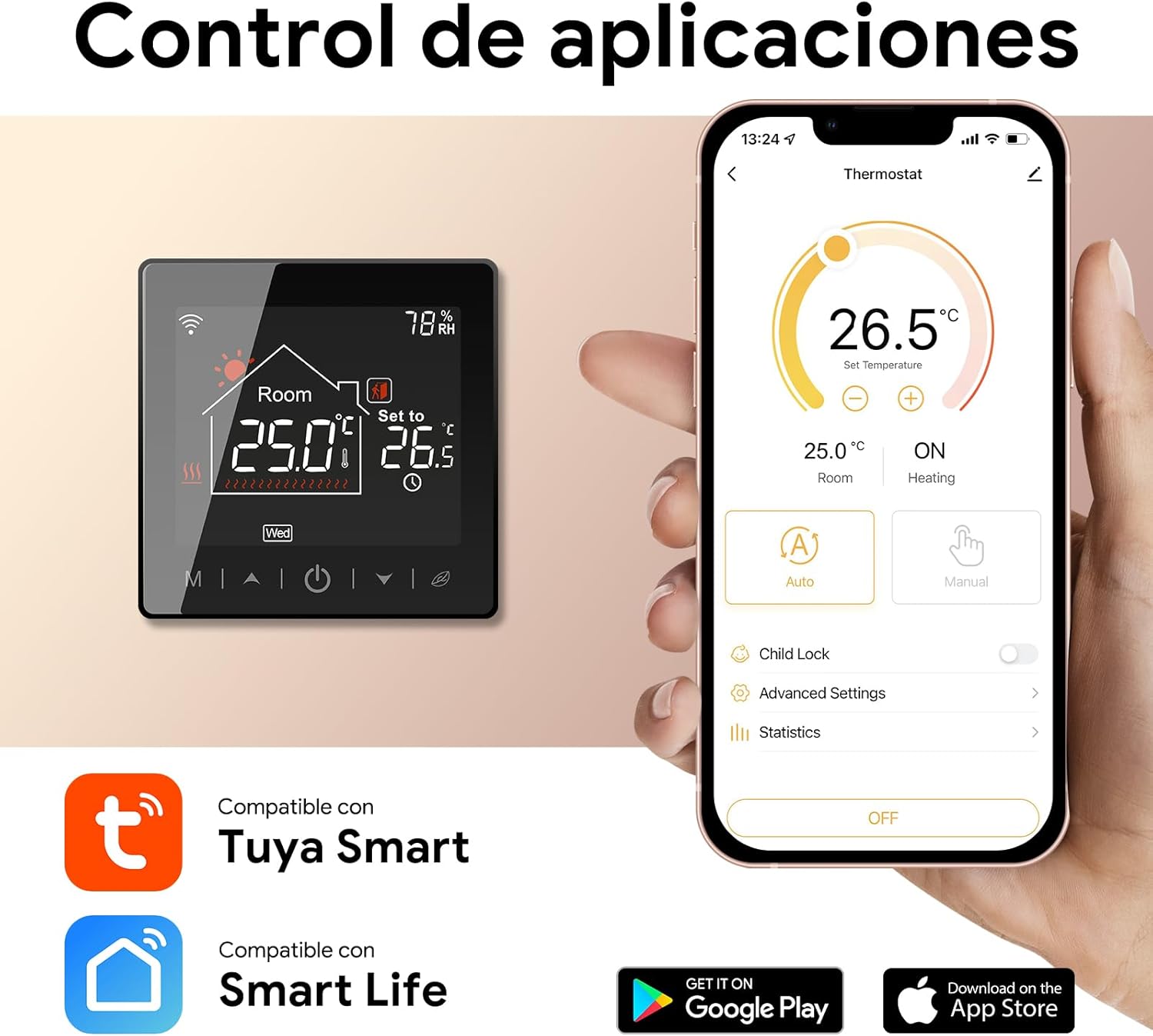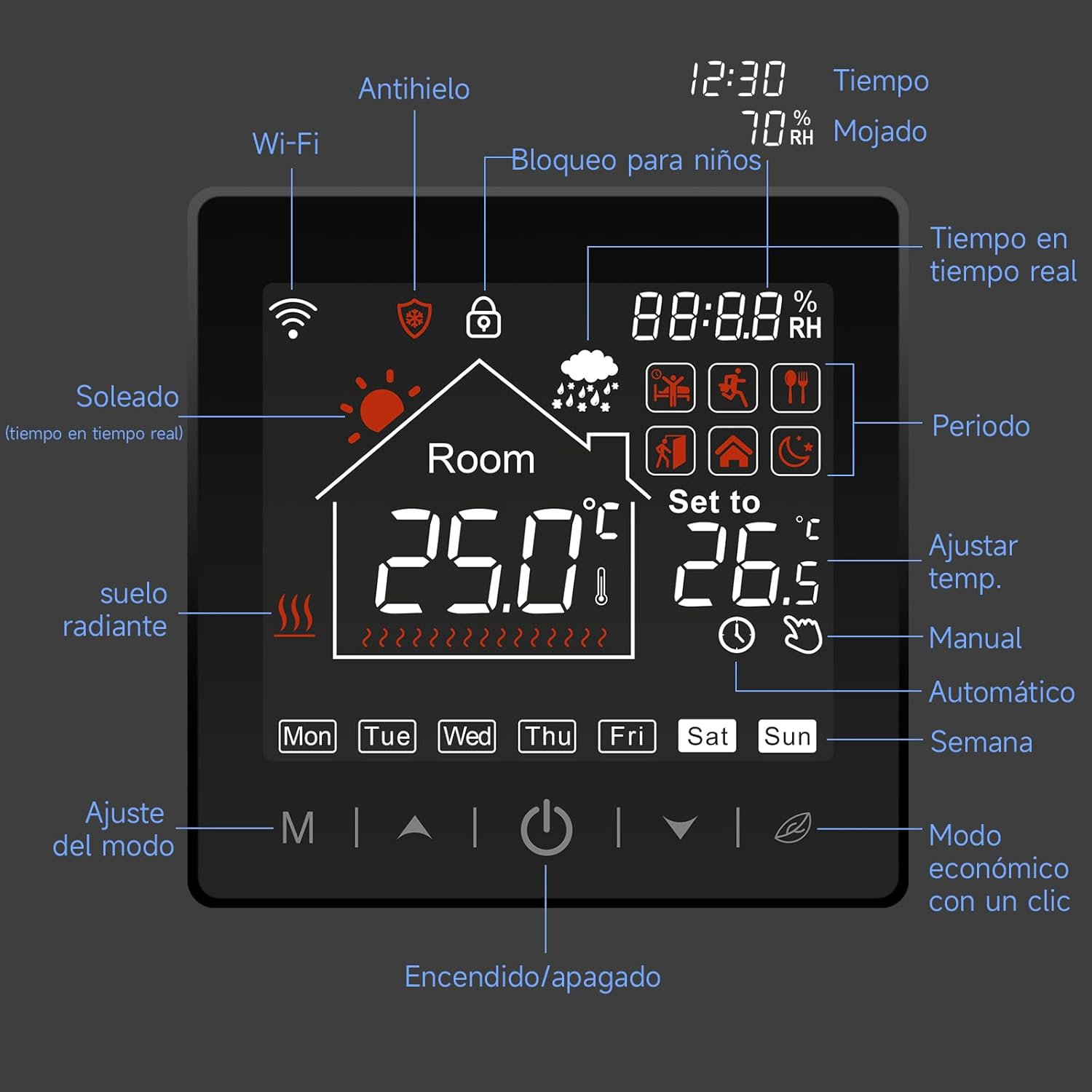 11 valoraciones en WiFi Thermostat, Tuya Smart Voice Control App/LCD Display Backlit, 3A Programmable Wall Boiler Heating Thermostats, Compatible with Alexa/Google Assistant