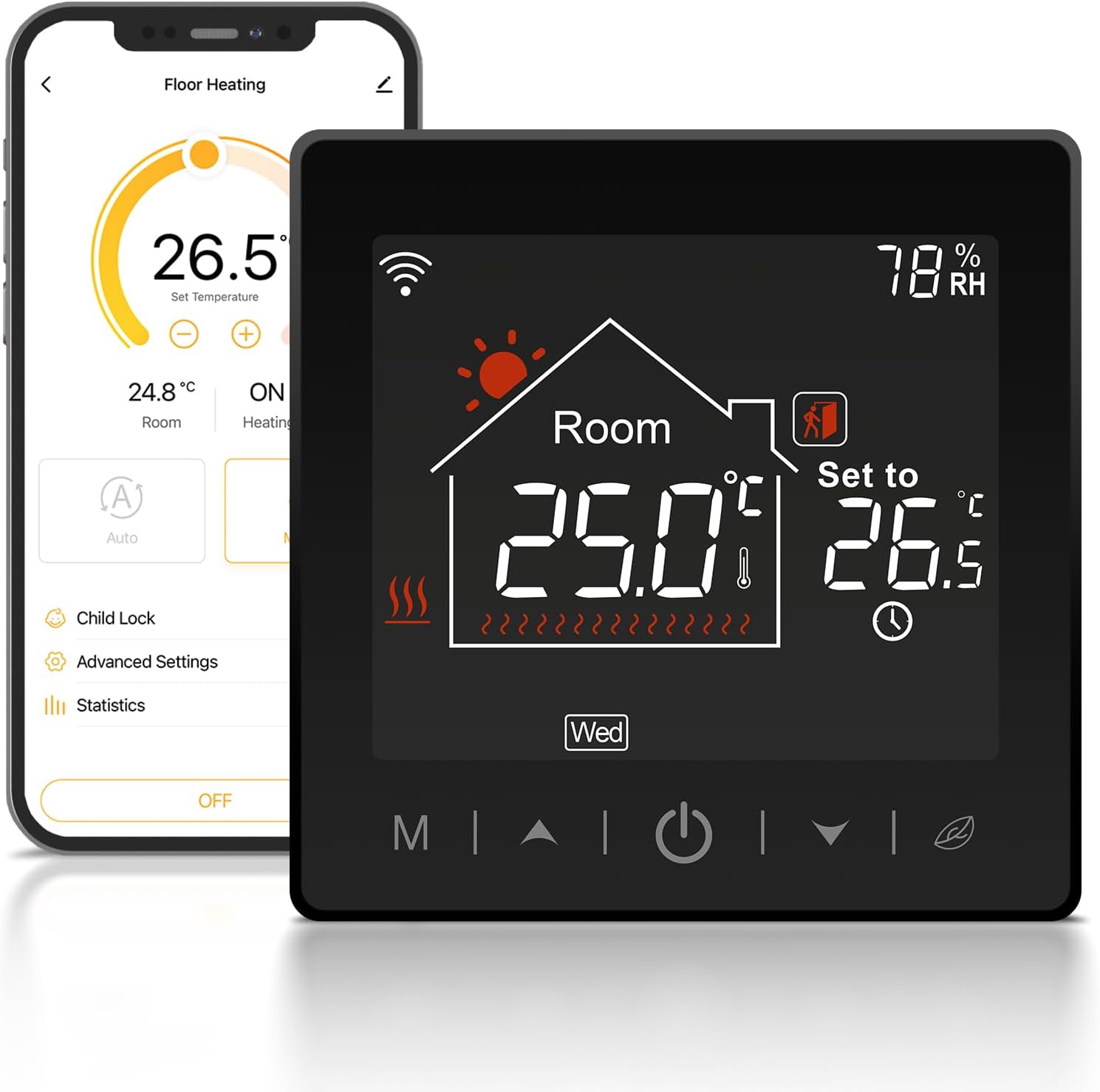 Product Summary: WiFi Thermostat, Tuya Smart Voice Control App/LCD Display Backlit, 3A Programmable Wall Boiler Heating Thermostats, Compatible with Alexa/Google Assistant