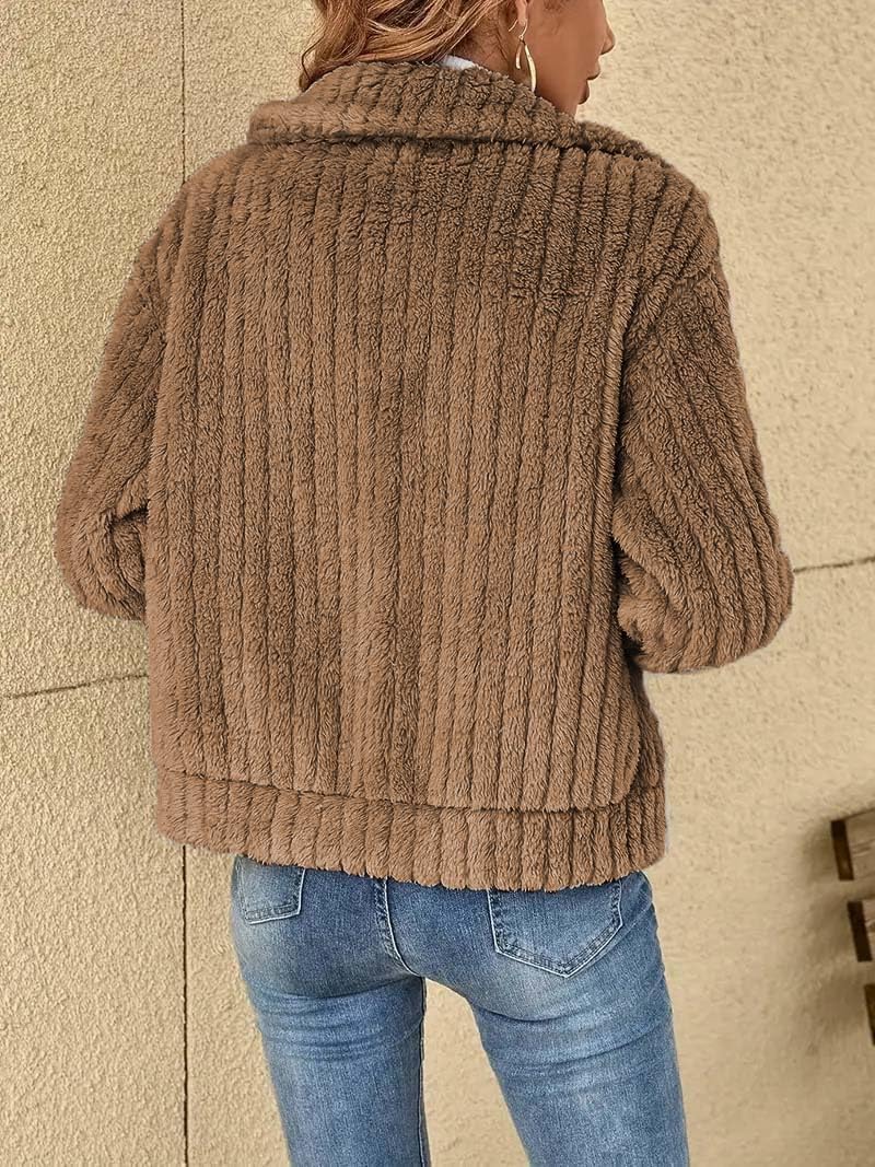 Women’s Warm Fleece Coat Jacket Long Sleeve Elegant Short Faux Fur Coats Winter