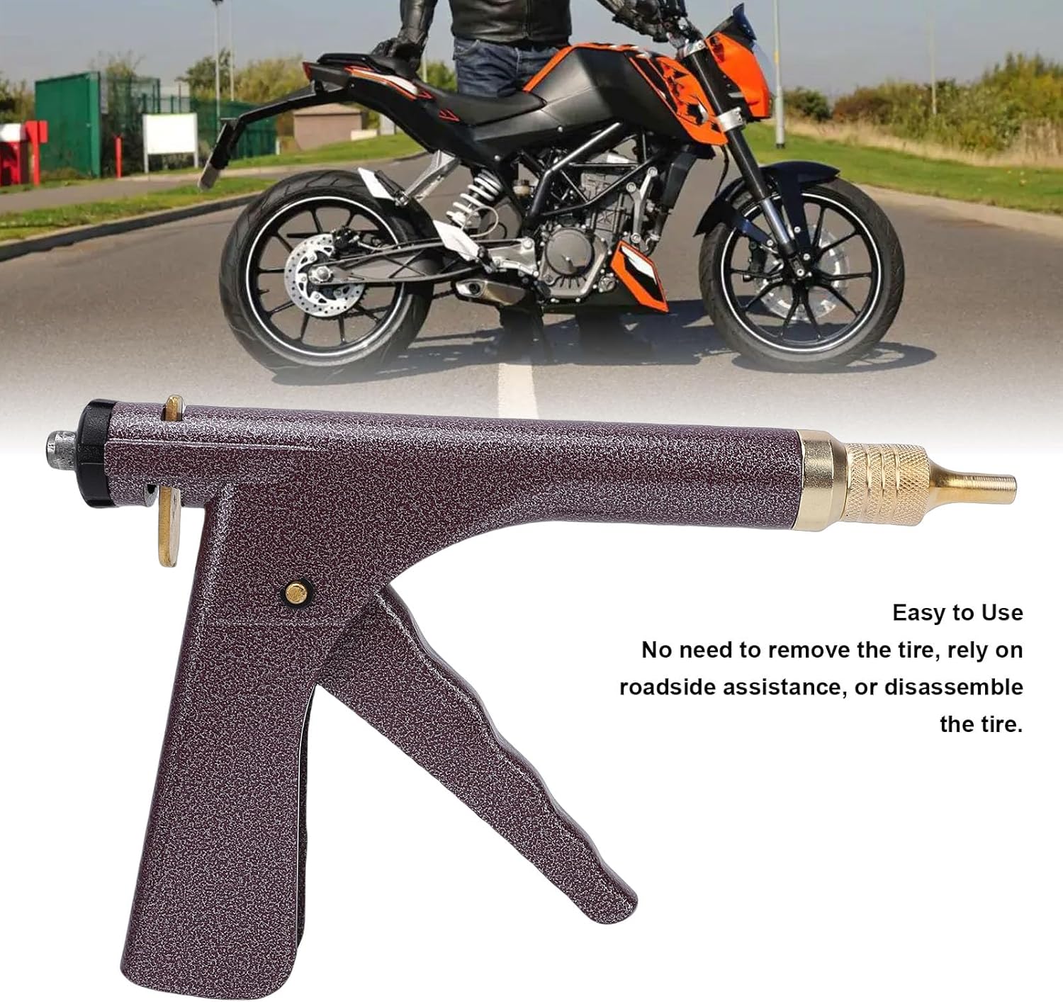 [Reparación rápida y sencilla] Dígale adiós a la molestia de quitar neumáticos o esperar asistencia en la carretera.Con este kit, puedes completar una reparación en solo 10 minutos una vez que lo domines.el estilo gatillo ofrece un excelente agarre y un funcionamiento suave, lo que hace que el proceso de reparación ahorre tiempo y no requiera esfuerzo.