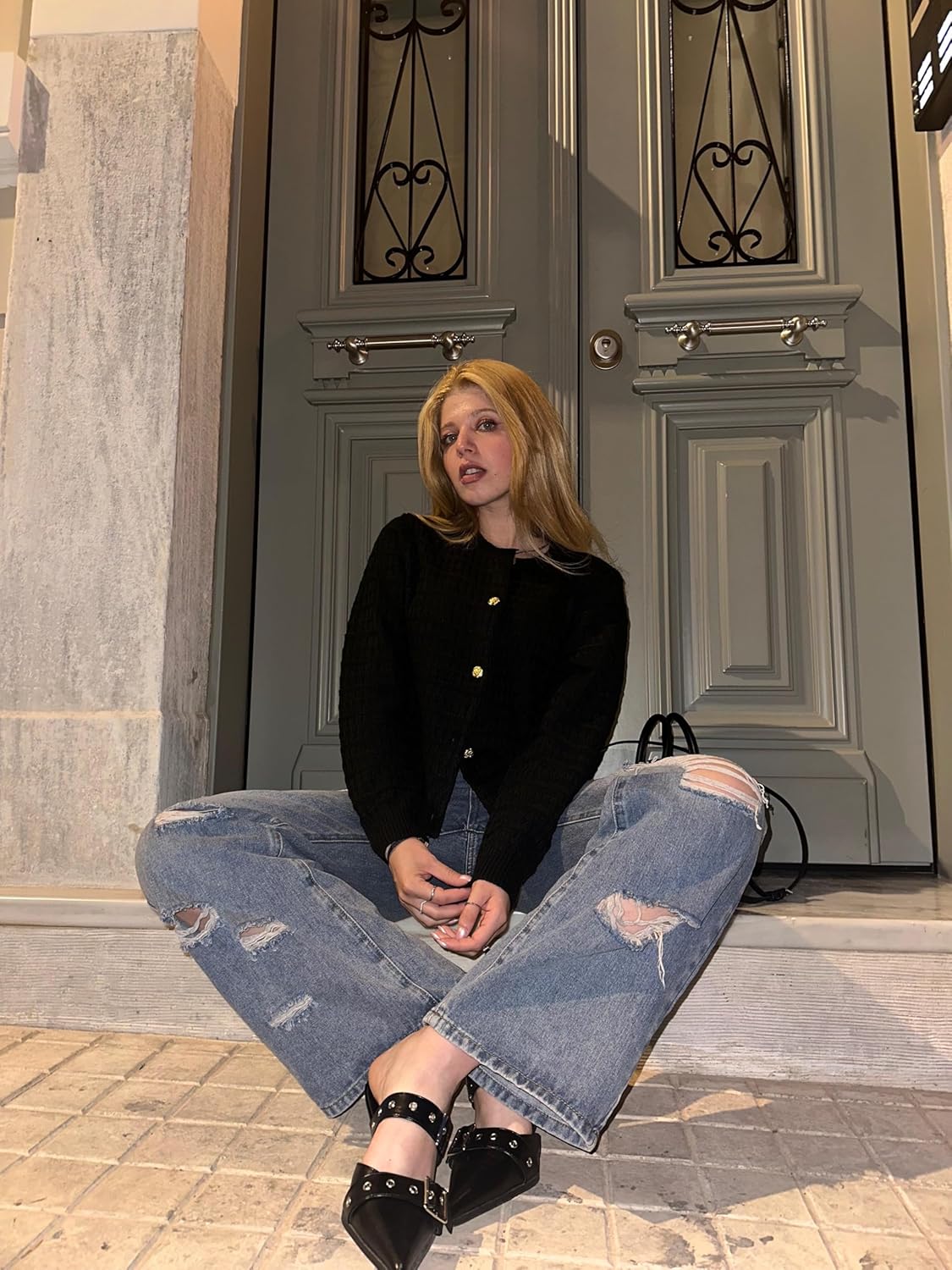 Women Short Knit Cardigan Long Sleeve Crew Neck Cardigan Elegant Button Down Outerwear Plain Knit Coat